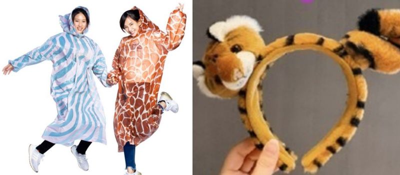 (左)動物造型雨衣、(右)老虎造型髮箍,皆為隨機不挑款。