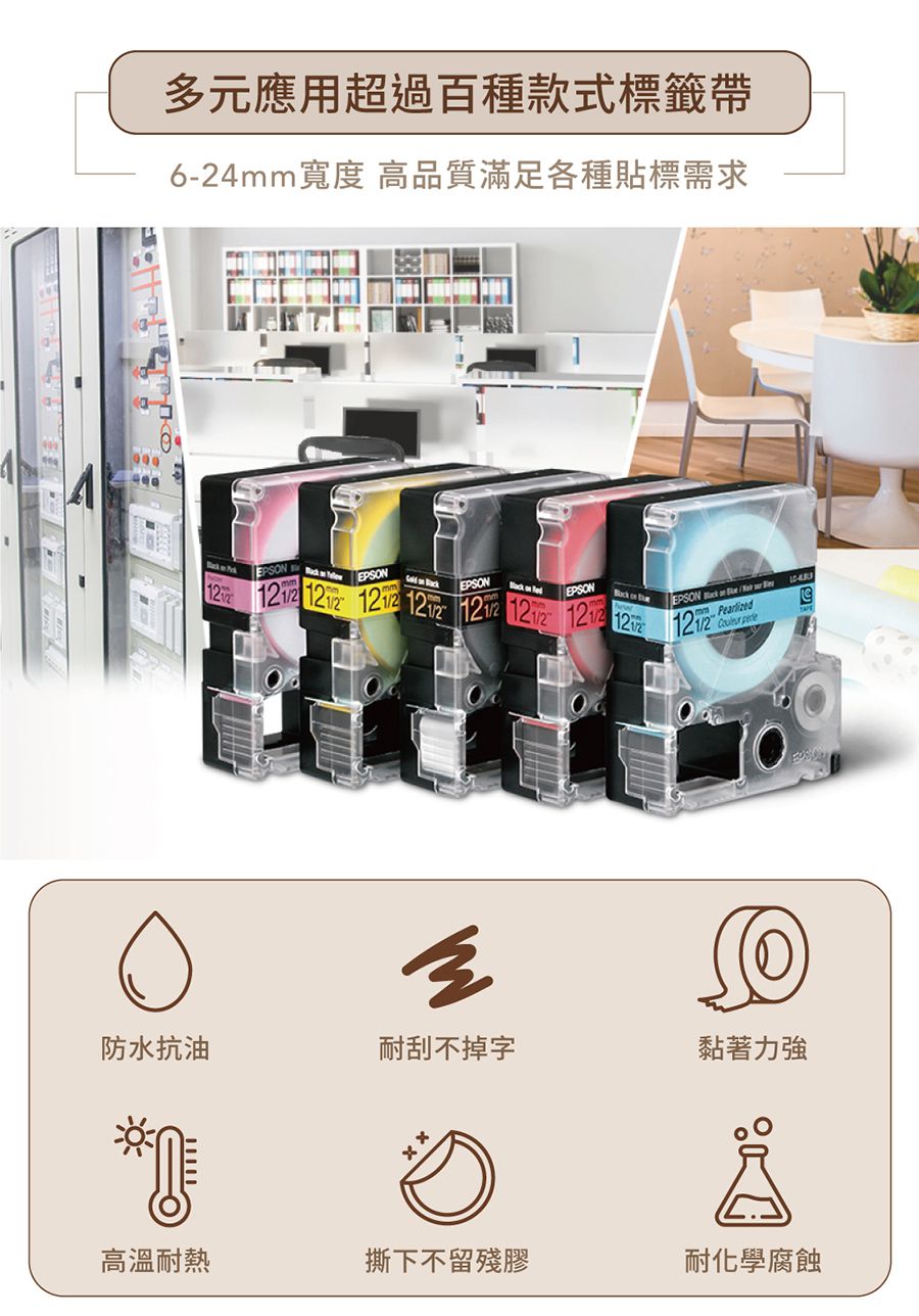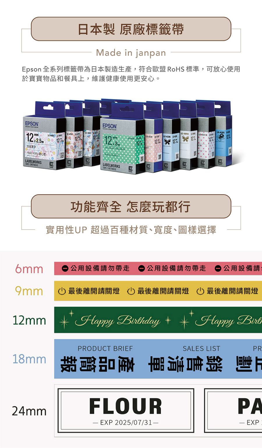 除了一般貼紙材質,EPSON 還出了很多不同材質的標籤,有緞帶、和紙、燙印多種材質可以加購和運用唷~