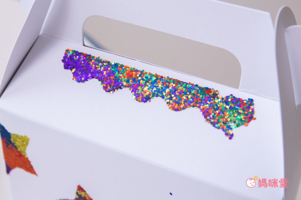 因為魔豆貼具有黏土的特性,所以壓在紙上放置一天就會黏在紙盒上囉!