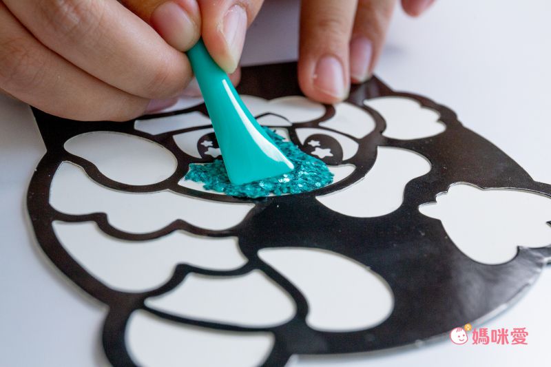 玩法也是相當簡單!挑選一個喜歡的透明殼圖案,再挑選一顆喜歡的魔豆,輕輕的用指腹把它壓入模具當中,然後按壓平均就OK啦~而且魔豆貼的類黏土材質可以輕鬆黏在模具上不容易掉落,不擔心孩子玩一玩滿桌子都是掉落的亮粉(大拇指)