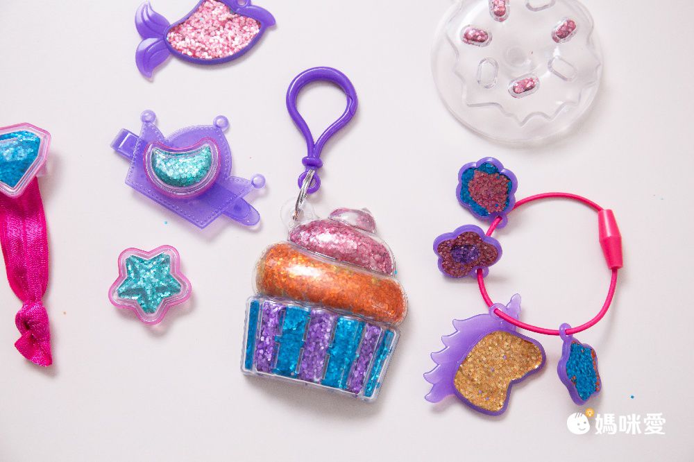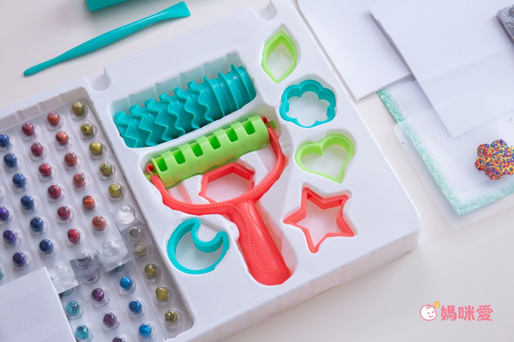 小女生會喜歡美感勞作,著色、沙畫、黏土…而且對於亮粉類更是愛不釋手!這次新加入的 3 款都是女孩兒最喜歡的手鍊、吊飾、髮飾組,外盒很吸睛看圖就能了解使用方式,魔豆貼結合亮粉和黏土特性,一顆就能讓模具填色,而且要用多少就開幾顆,很好保存和塑形,真的非常方便!