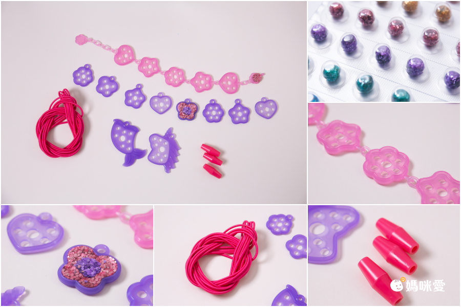 這組手飾組也是超豐富,有 8 種小飾品&彈力繩,可以製作手鍊也可以製作項鍊~絕對是女寶們熱愛的款式之一啊!!
