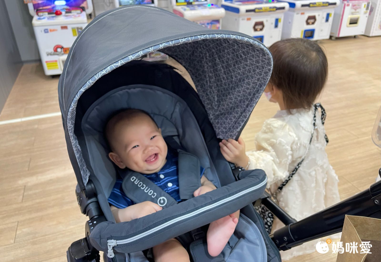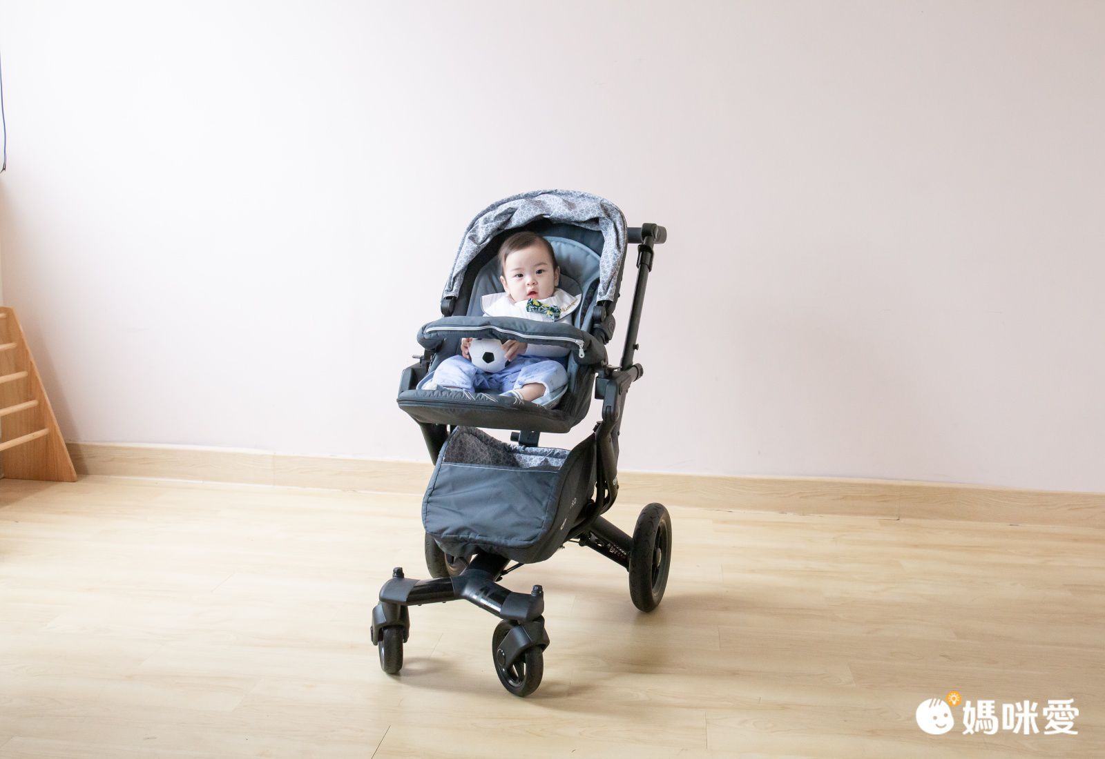 推車的外型很時尚,雖然7個月的梁麵不常坐推車,但是坐在裡面非常開心欸~