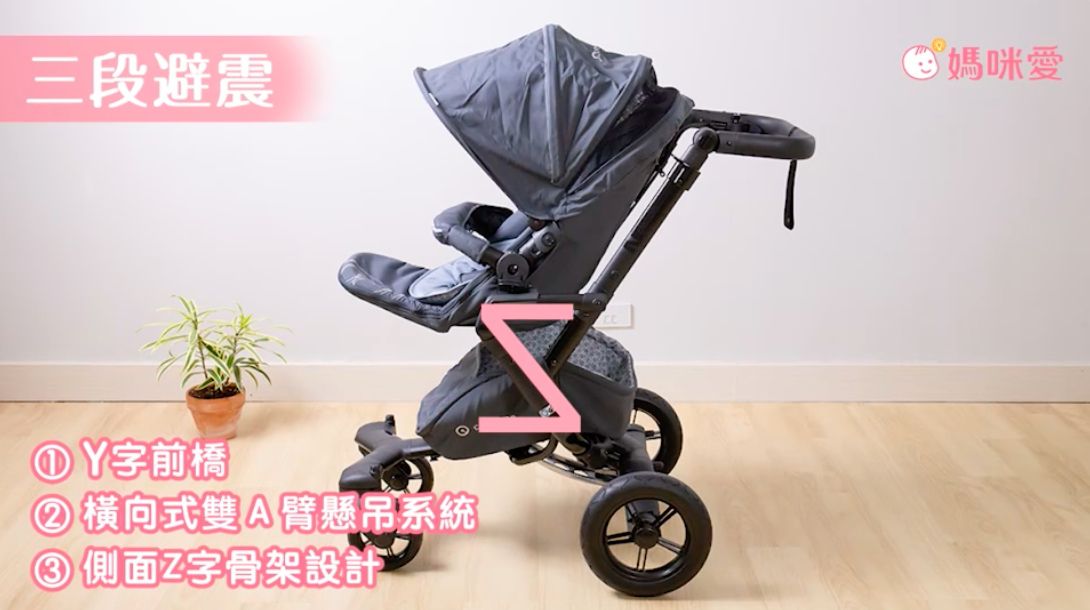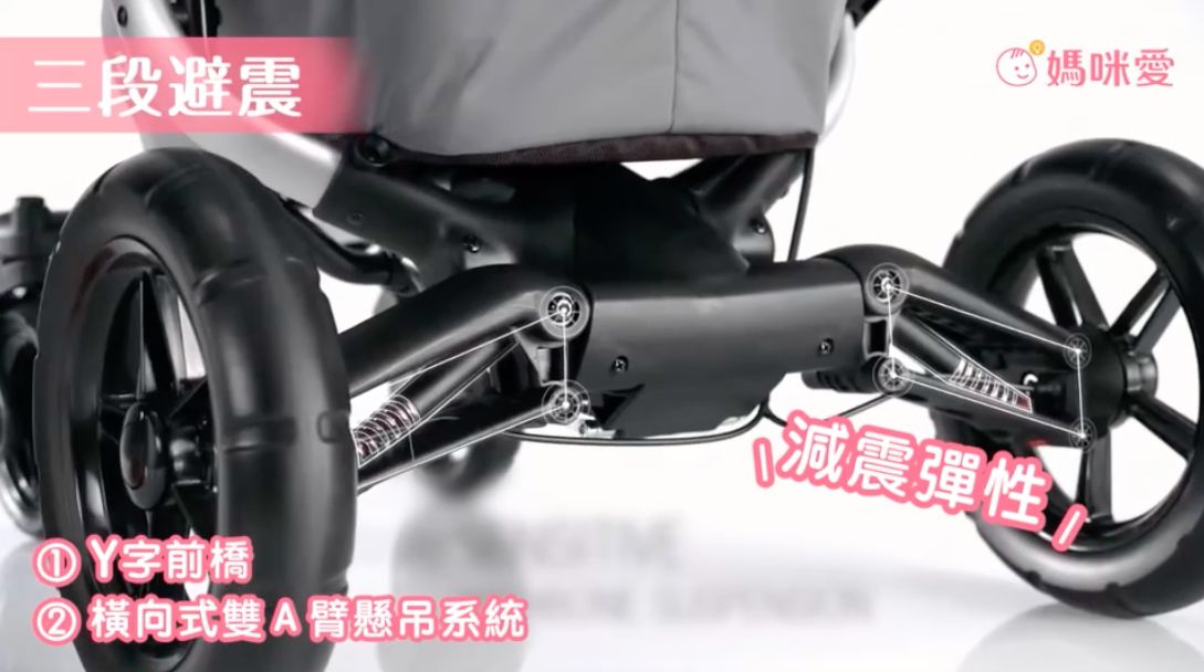 特殊的Z字骨架+減震系統,讓前、後輪輪行駛的震動,不會直接往上傳遞