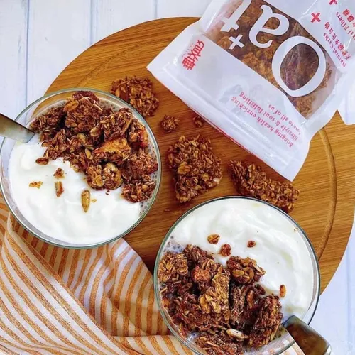 編媽是超級甜食控,所以巧克力口味就是編媽心頭好!一開袋可可味撲鼻而來,吃起來像是灑滿了可可粉的甜點,因為燕麥片不添加精緻糖類,所以吃起來不甜(對甜品的最高評價),混合糙米爆米香、南瓜籽、奇亞籽與核桃,香甜不胖超對味!