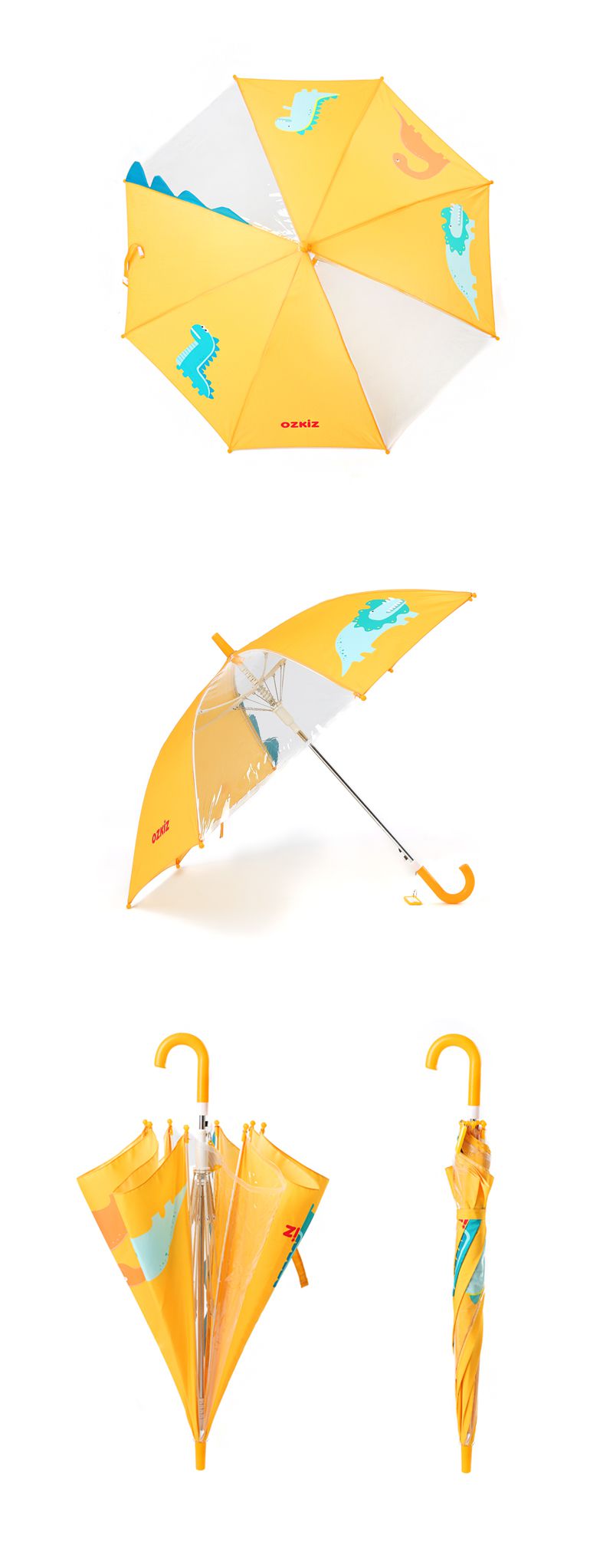 傘面上有兩塊是透明傘面,不僅讓寶貝的視野更開闊更安全,也能讓小朋友隔著雨傘探索下雨天的天空!