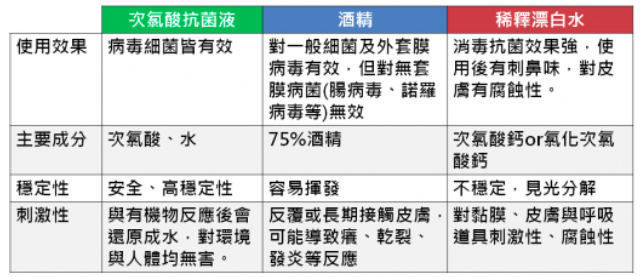 媽咪還在用漂白水或酒精消毒嗎?漂白水雖然有很強的殺菌力,但對呼吸道及皮膚有刺激性;酒精殺不死無套膜病毒!而次氯酸抗菌液對於細菌、病毒皆有效,消毒的時間也相對更快速!加上和有機物反應後,會還原成水,對環境和人體無害