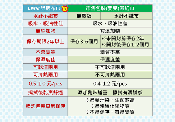 可直接抽取的Leshi乾濕兩用布巾,家用、外出都超方便!成分無添加,超安心!超過40家月子中心都選用樂適的商品呢:)