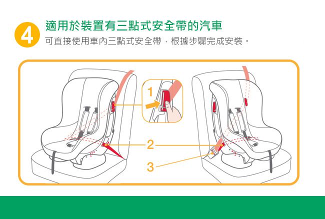 4.本兒童安全座椅若於意外中遭受劇烈撞擊後,不可繼續使用。