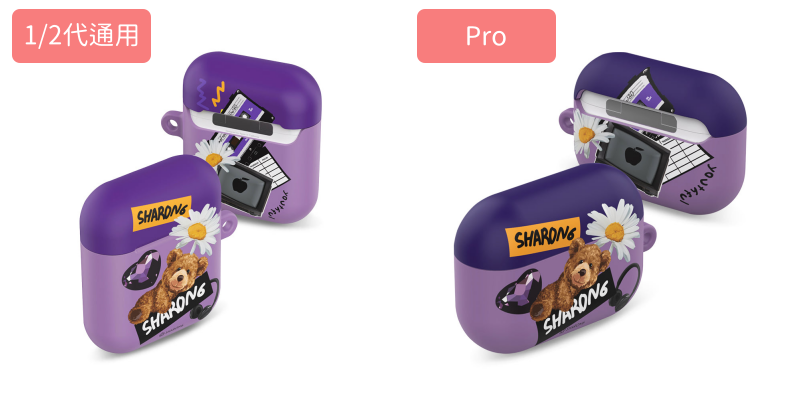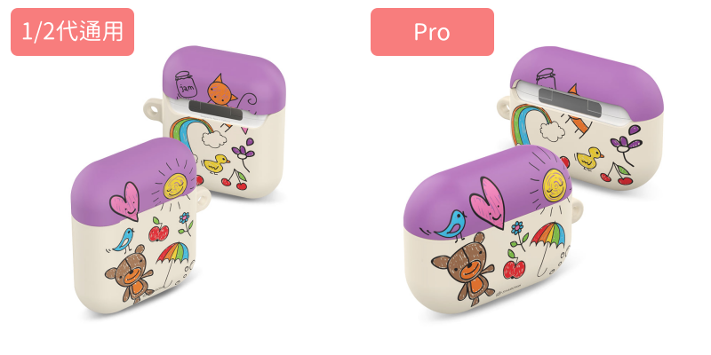 AirPods保護殼的設計也都是他們家獨創的圖樣!部分款式還能和手機殼配成一套,真的超級可愛 >< 他們家是PC硬殼,服貼AirPods不容易掉哦~大部分都有Pro和1/2代通用版型,如果媽咪有看到喜歡的款式,可以直接到填單頁挑喜歡的款式再選尺寸即可!