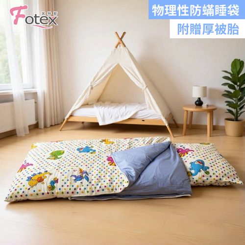 台灣氣候潮濕多雨,容易滋生塵蟎,尤其是家有容易過敏的孩子,挑選睡袋更是要格外費心!要防蟎材質、要吸濕排汗、要冬夏兩用,沒問題!獲得國際防蟎認證的 Fotex 芙特斯 兒童防蟎睡袋,讓媽咪三個心願一次滿足!100% 純棉表布加上防蟎裡布,100% 台灣製造,可整件水洗,被胎可拆卸、四季都實用!台灣地區媽咪購買都是免運直接送到家,千萬別錯過啦!