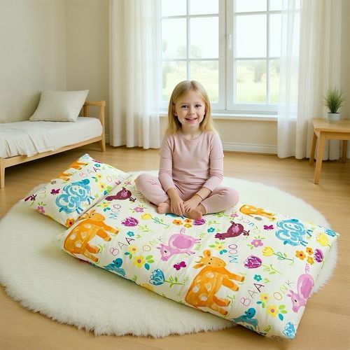 尺寸:當睡袋 長120 x 寬75 cm、打開後 長120 x 寬150 cm,枕頭尺寸:35 x 53 cm