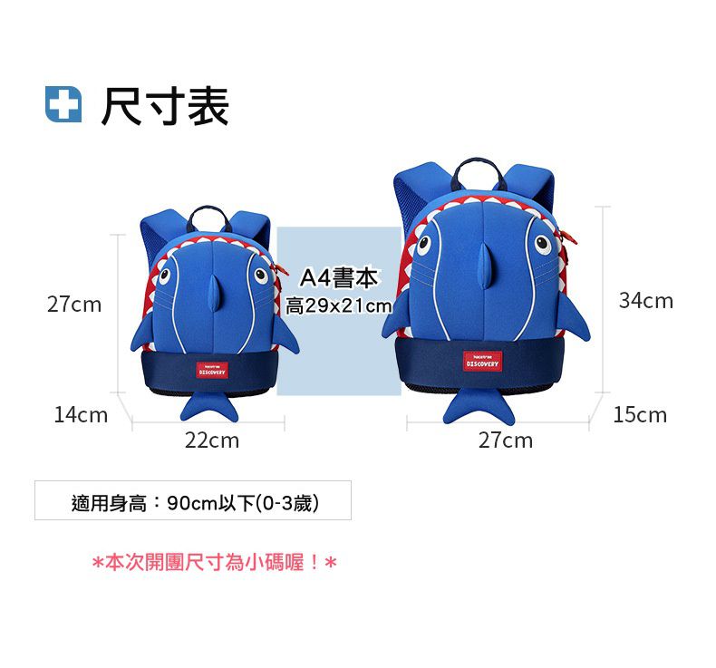 尺寸:包包:26cm*31cm*12.5cm,走失繩:約110cm;適用年齡:2-7歲