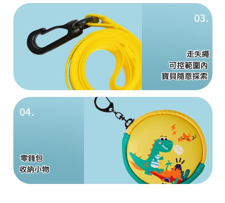 內附防走失繩,小小童外出時家長也能牽引不怕走失,在車多的路上也比較不怕突發狀況