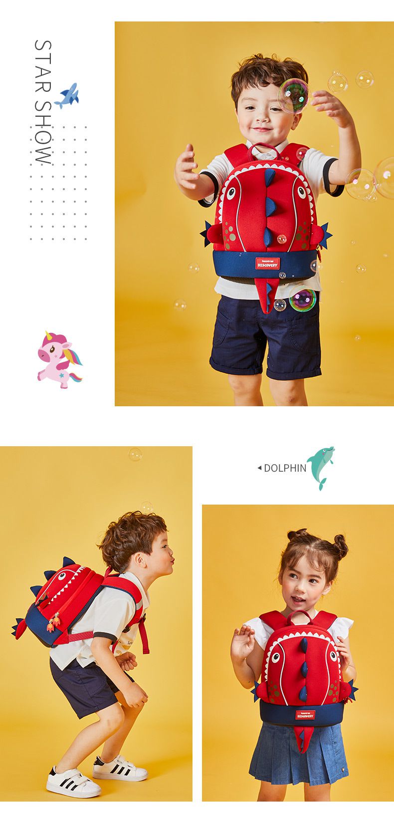 這款造型書包不僅超勾錐!有鯊魚、恐龍、獨角獸的可愛款式,重量400g更是大約一顆蘋果輕!!!