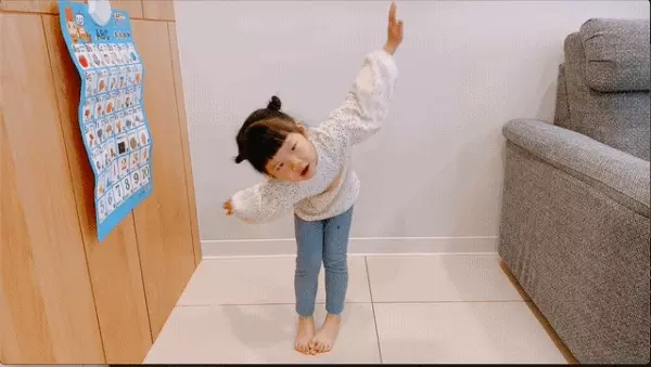 多練習幾次漸漸地會了,「媽媽~老師用英文稱讚我!」正確的時候稱讚寶貝能鼓勵學習、讓他們更有反覆練習的動力喔!一首ABC+兩首英文歌,唱唱跳跳學習英語好開心!