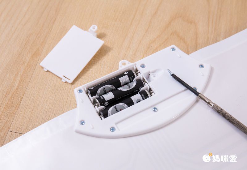 電池開關在背後。小提醒:本產品不含3顆AAA電池!