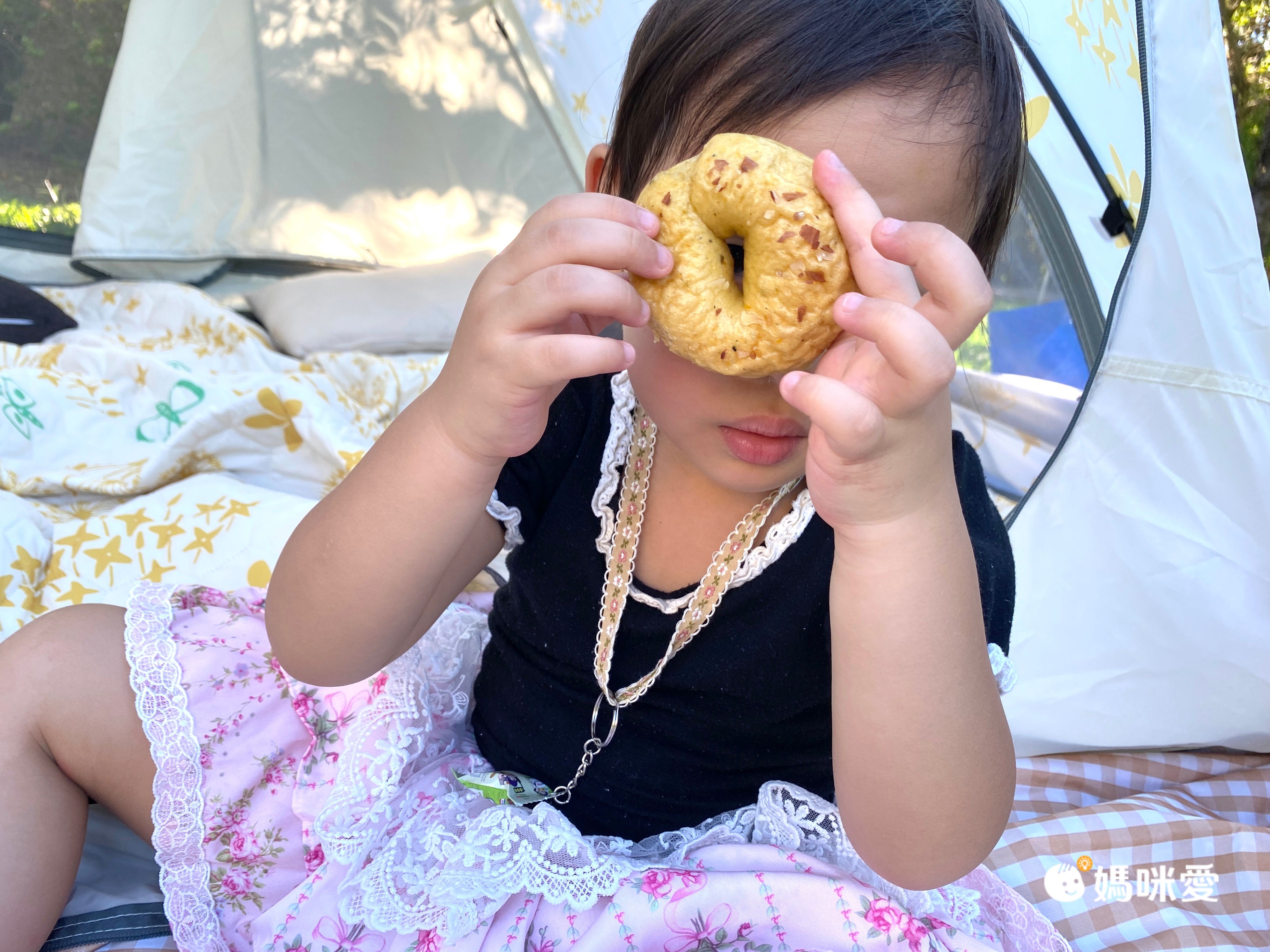 原本想說妹妹荳荳會不會咬不動,沒想到貝果軟軟的、很好咬!吃一個當早餐或是點心都很剛好,姐妹吃起來覺得調味沒有太重,同樣也很適合寶寶當作抓握的手指食物嘗試看看唷~