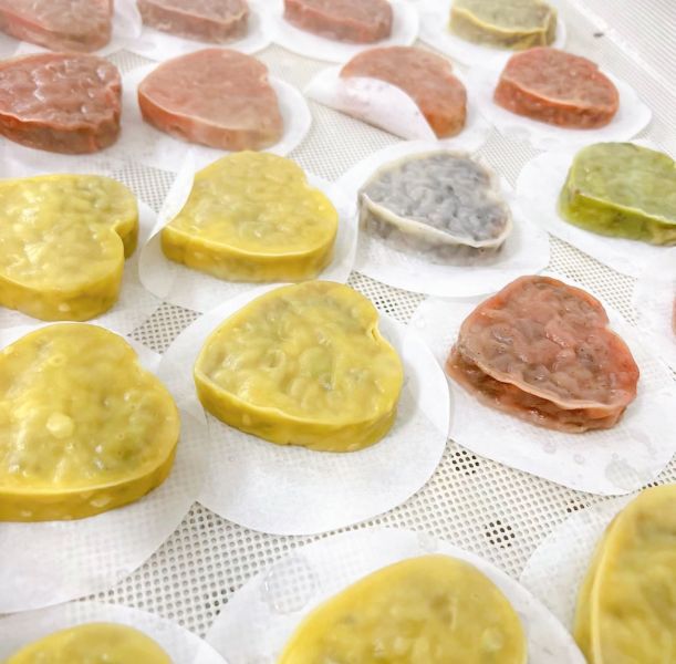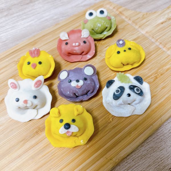 童心好食館的雲彩水餃有高麗菜鮮蝦、高麗菜花菇鮮肉、高麗菜玉米鮮肉口味,可愛的雲朵造型、顏色也超級繽紛!水餃皮的顏色都是來自於各種天然食材,沒有添加其他人工色素、味素以及防腐劑。