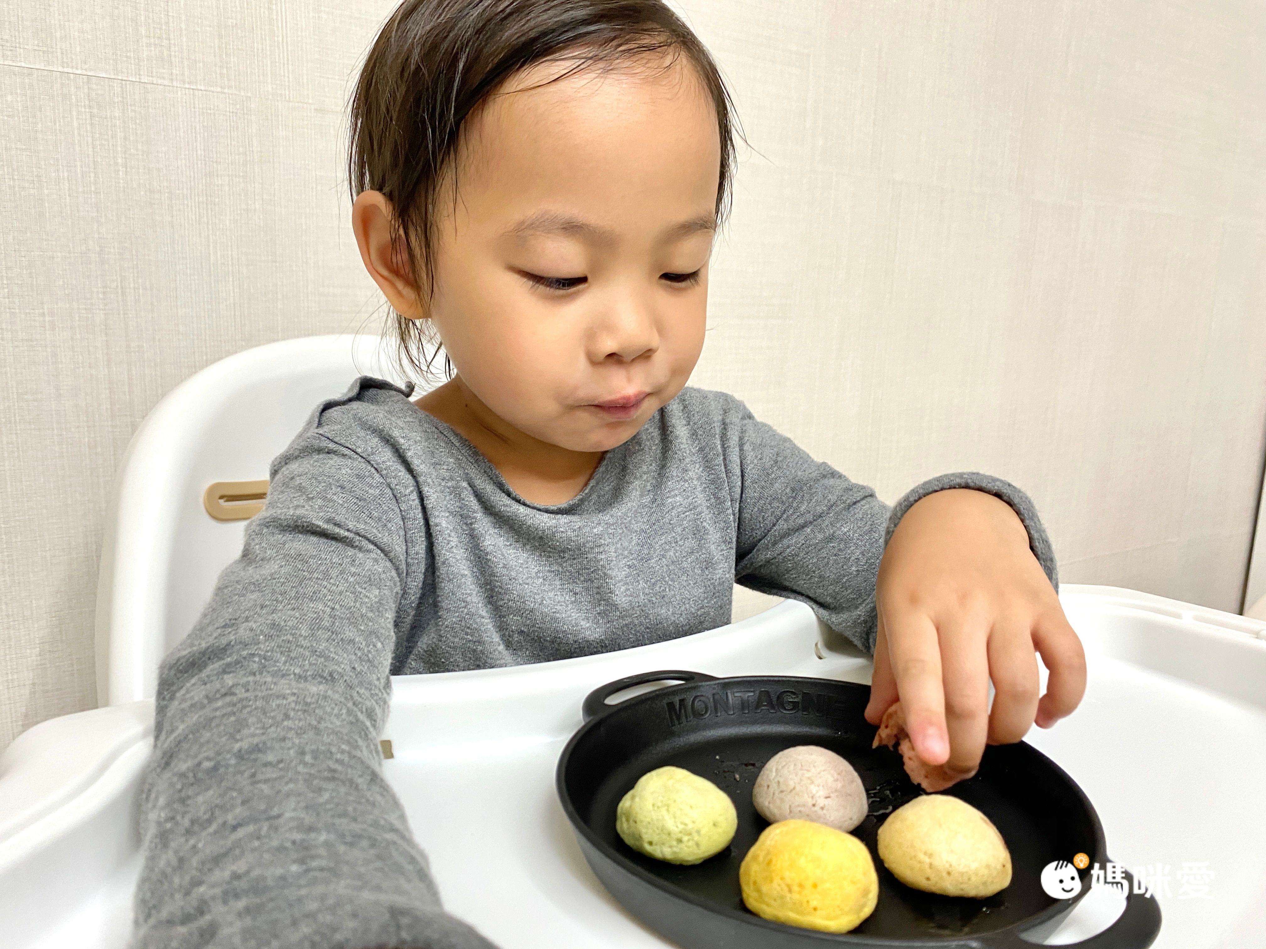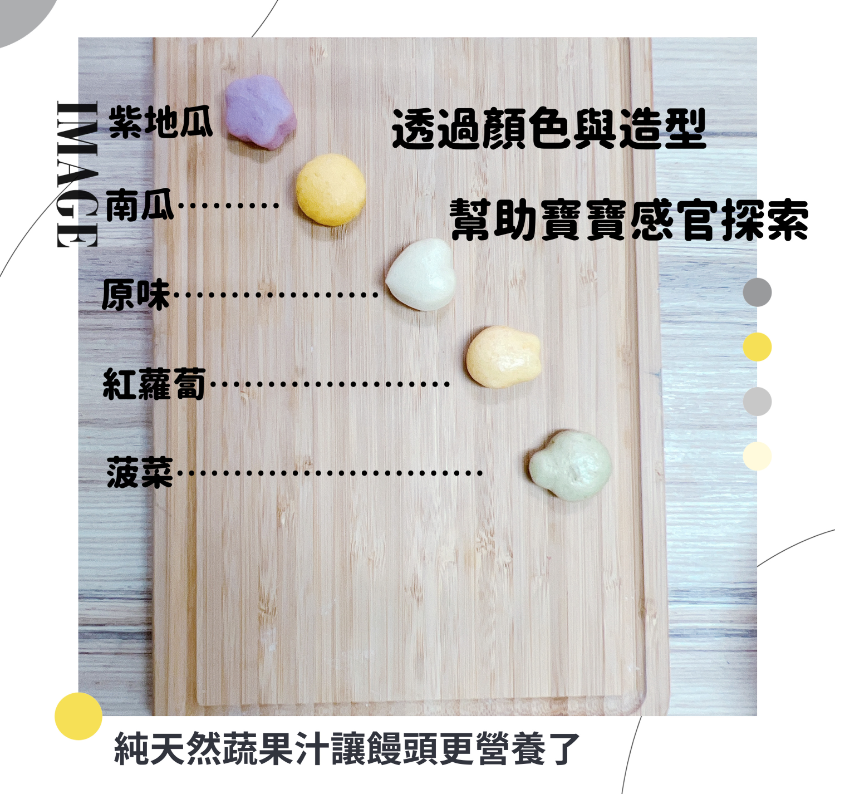說到寶寶主食,當然不能錯過寶寶饅頭這個品項呀!童心好食館的彩色饅頭大小設計成可以讓寶寶一口吃的尺寸,作為手指食物非常合適呢~