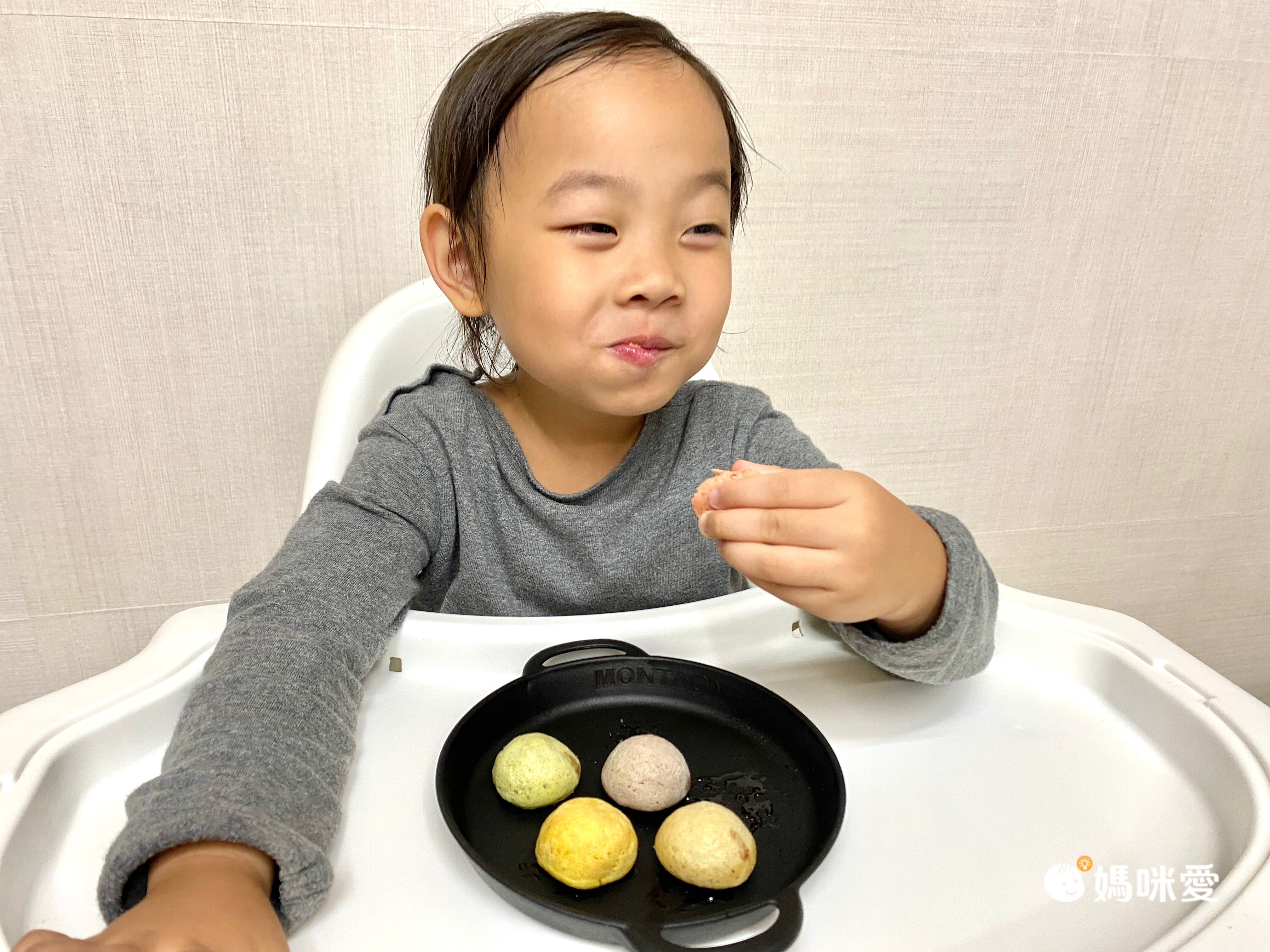 小巧可愛的水餃,作為餐盤上的點綴也非常有畫龍點睛的感覺呢!童心好食館設計的尺寸都讓寶寶很好拿取,直接用手抓來吃也是OK的喔~可愛的外型和繽紛的顏色很能吸引寶寶的食慾~不會吵著媽咪說不要吃飯了呢~