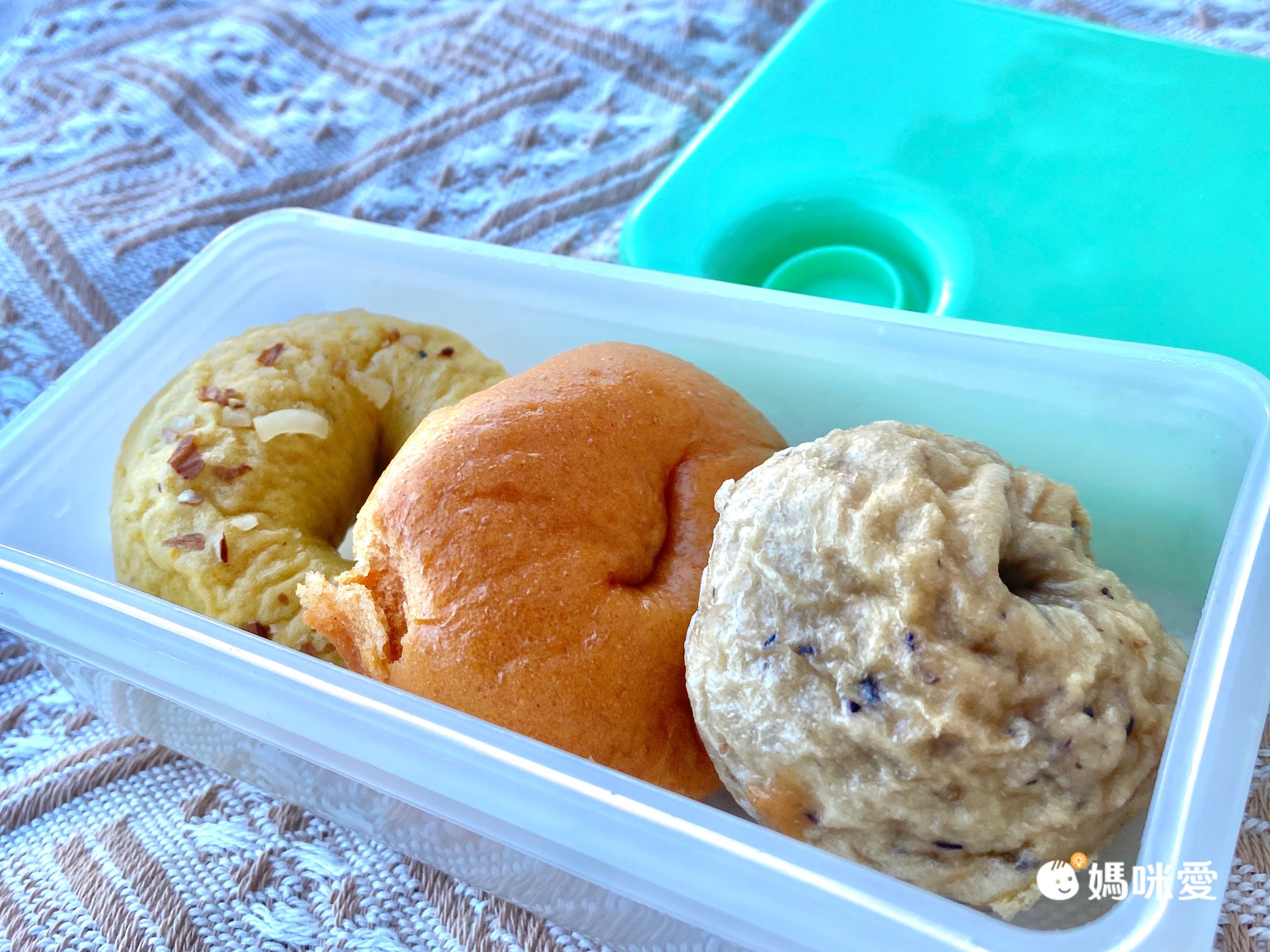 以藍莓、紅蘿蔔、南瓜製成的蔬果迷你貝果,添加酸奶製作營養多多,搭配一點點黑糖帶來的微糖風味,耐咬且十分有飽足感。