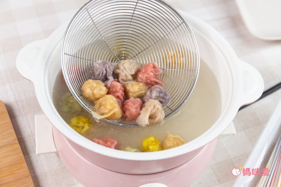 寶寶餛飩的皮都比較薄,所以本來就很好入口,單吃、煮湯吃都可以~ 等到餛飩浮起後,再煮1~2分鐘即可上桌。