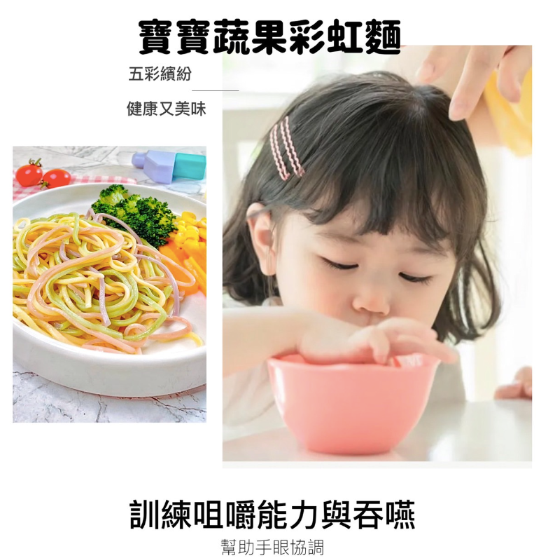 雖然是寶寶吃的麵條,但卻很不簡單!色彩繽紛,且都是天然食材製作,每種顏色的麵條都考慮到寶貝最缺乏的營養,維生素B、C及鐵等,全方面照顧!