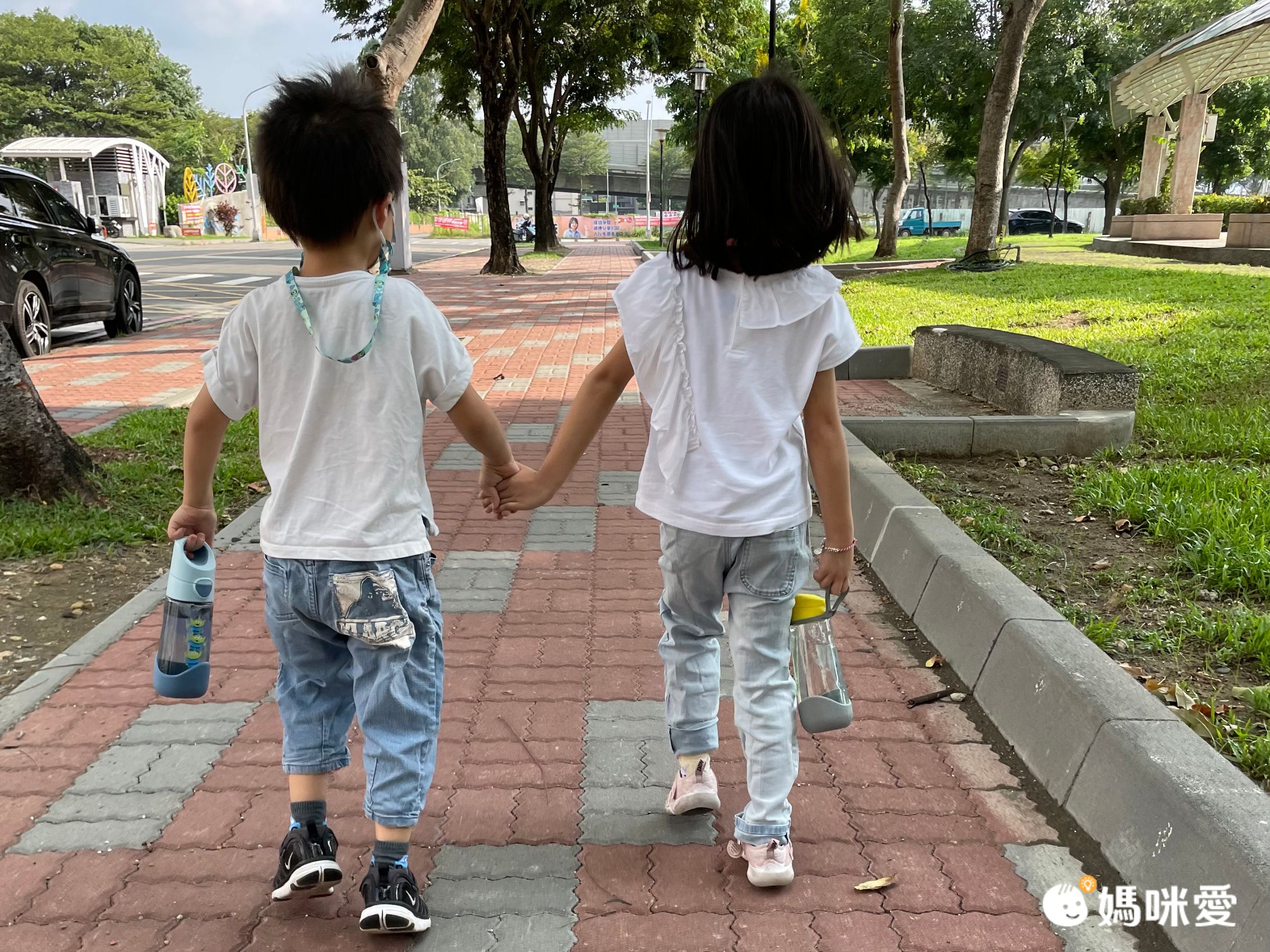 還能邊牽手邊拿水壺呢,媽咪我在後面拍到都感動了🥹