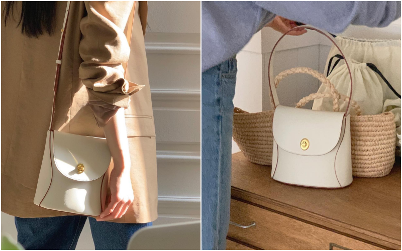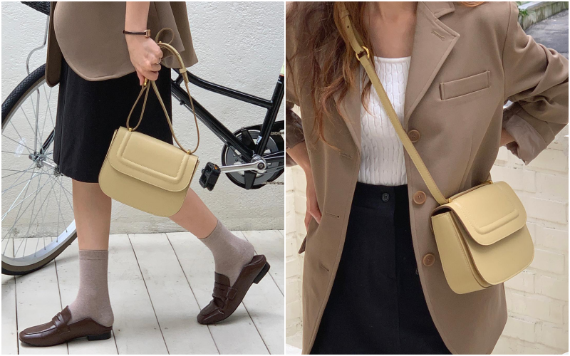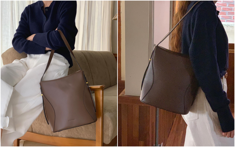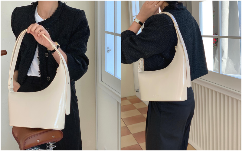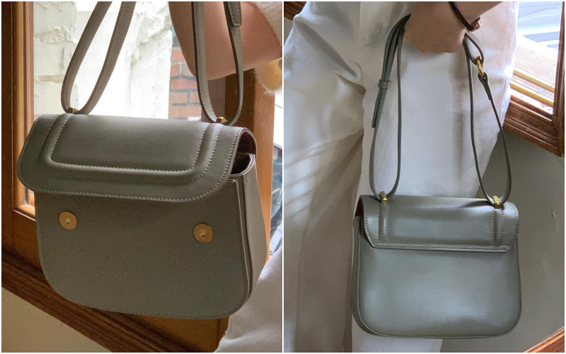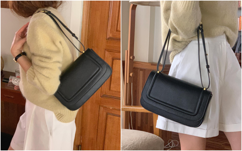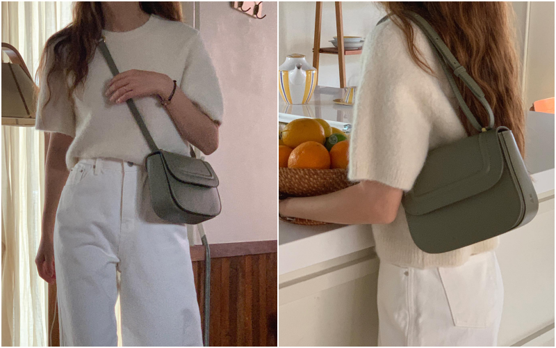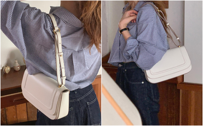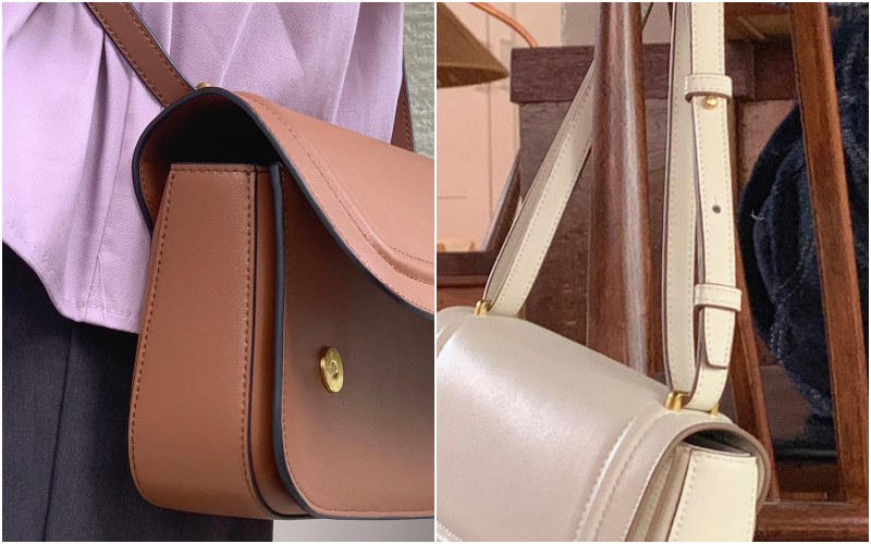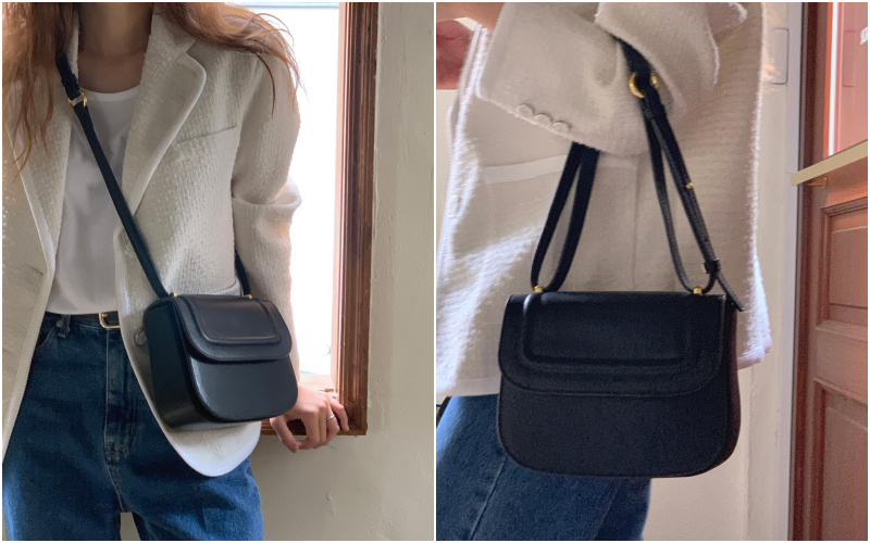 這款比起Sally,皮革帶有質感光澤,而且底部較寬、深度較淺,拿取東西很方便~ 比較適合率性簡約的穿著!