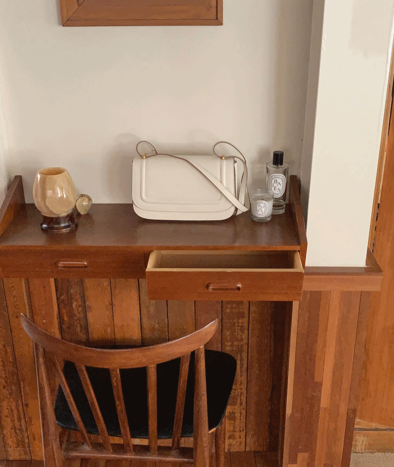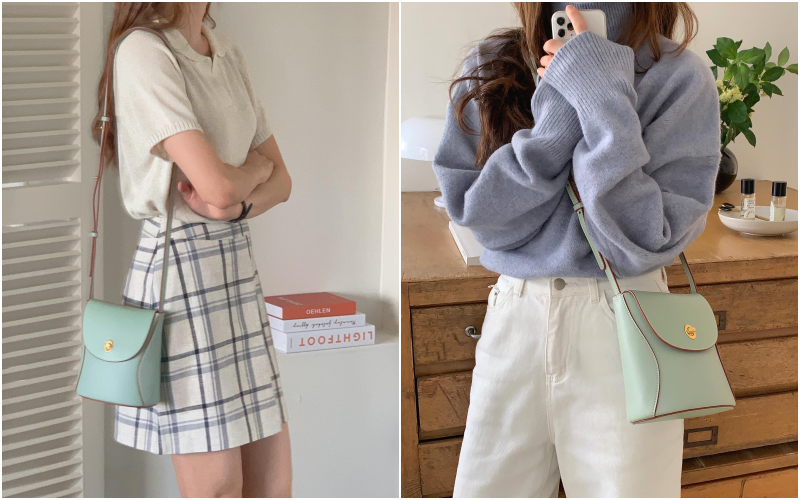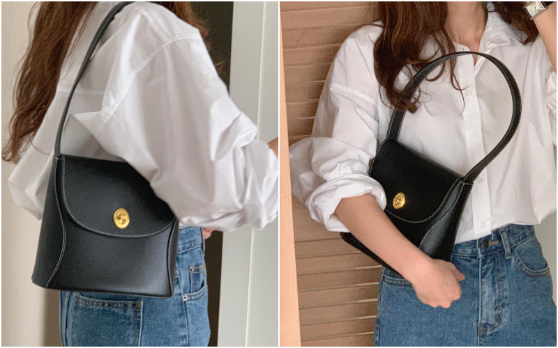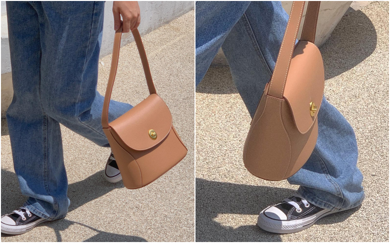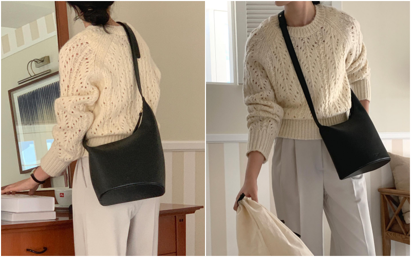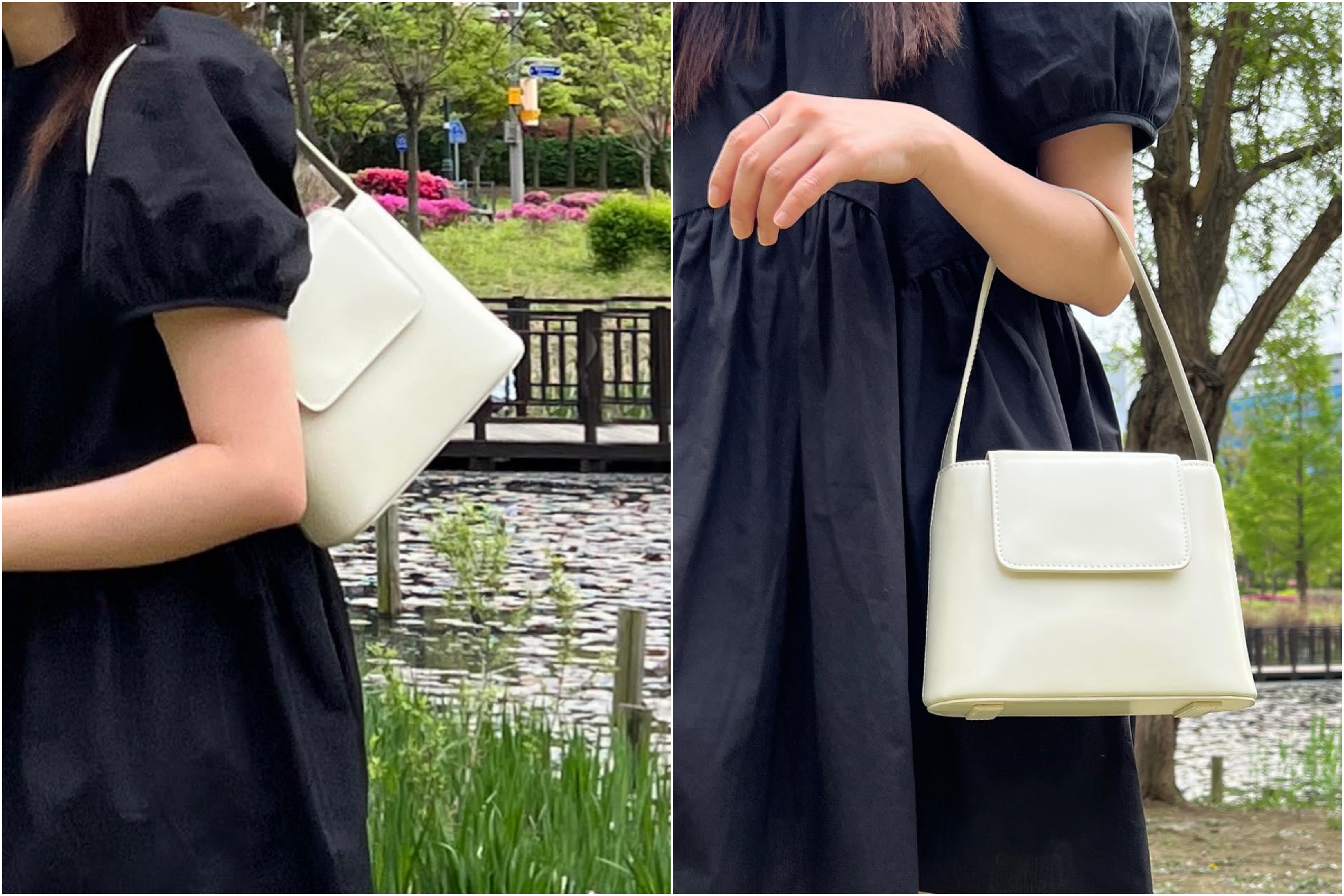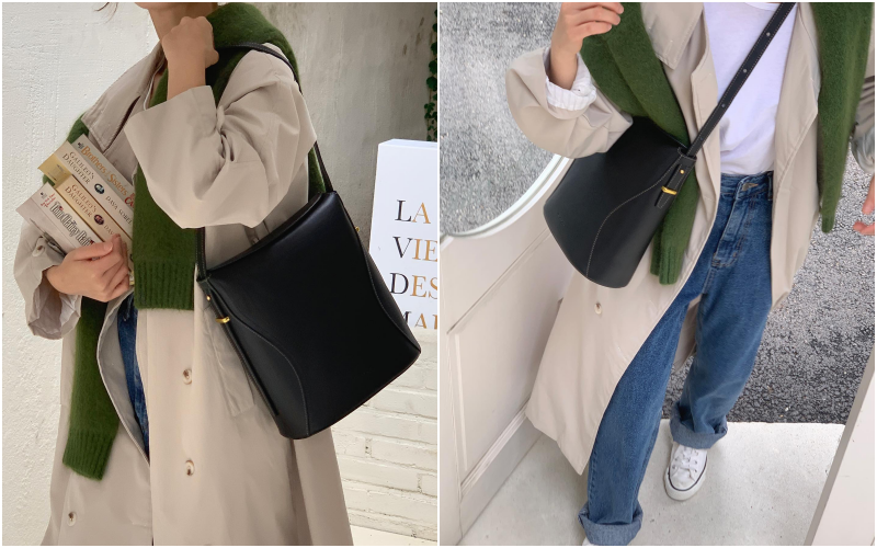 這款比起Sally,皮革帶有質感光澤,而且底部較寬、深度較淺,拿取東西很方便~ 比較適合率性簡約的穿著!