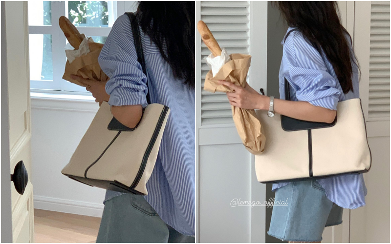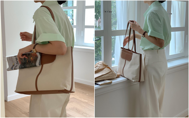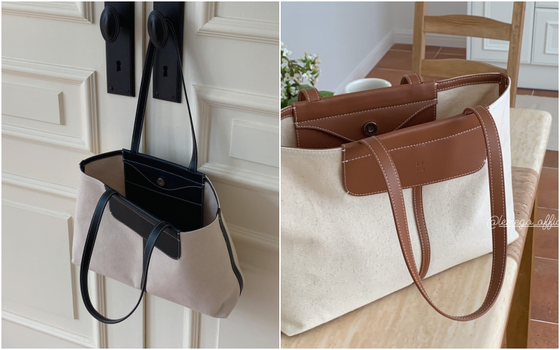 這款是真正的大容量!但因為全真皮會有點重,所以這款就做成真皮×帆布包的設計囉~