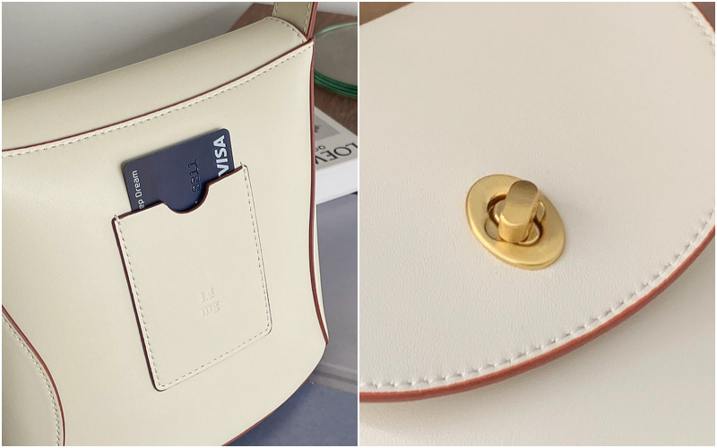 包包背面有一個卡夾位,可以放2張卡片~ 底部也有做小腳,可以避免包底和地面直接接觸!