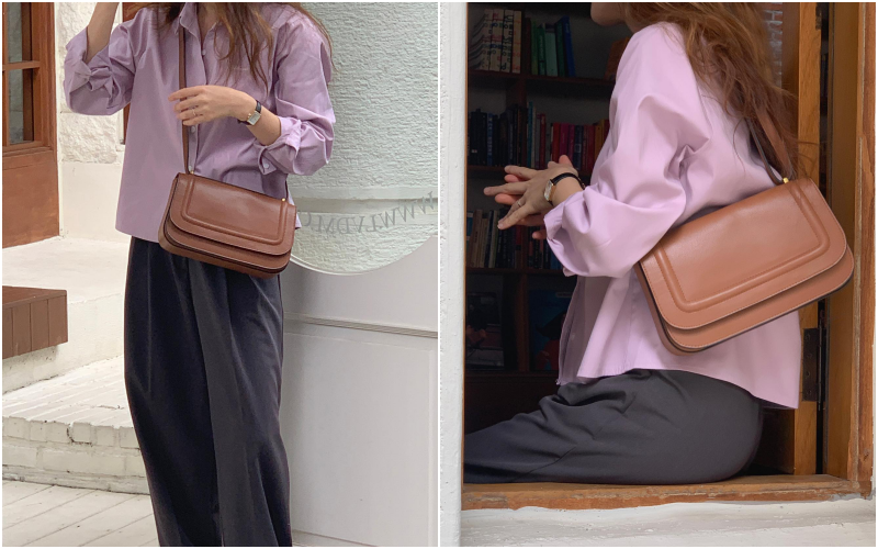 這款也是 100%牛皮,版型比較長一些,容量也比小方包大呦~俐落的版型,不管通勤、出遊都超適合!