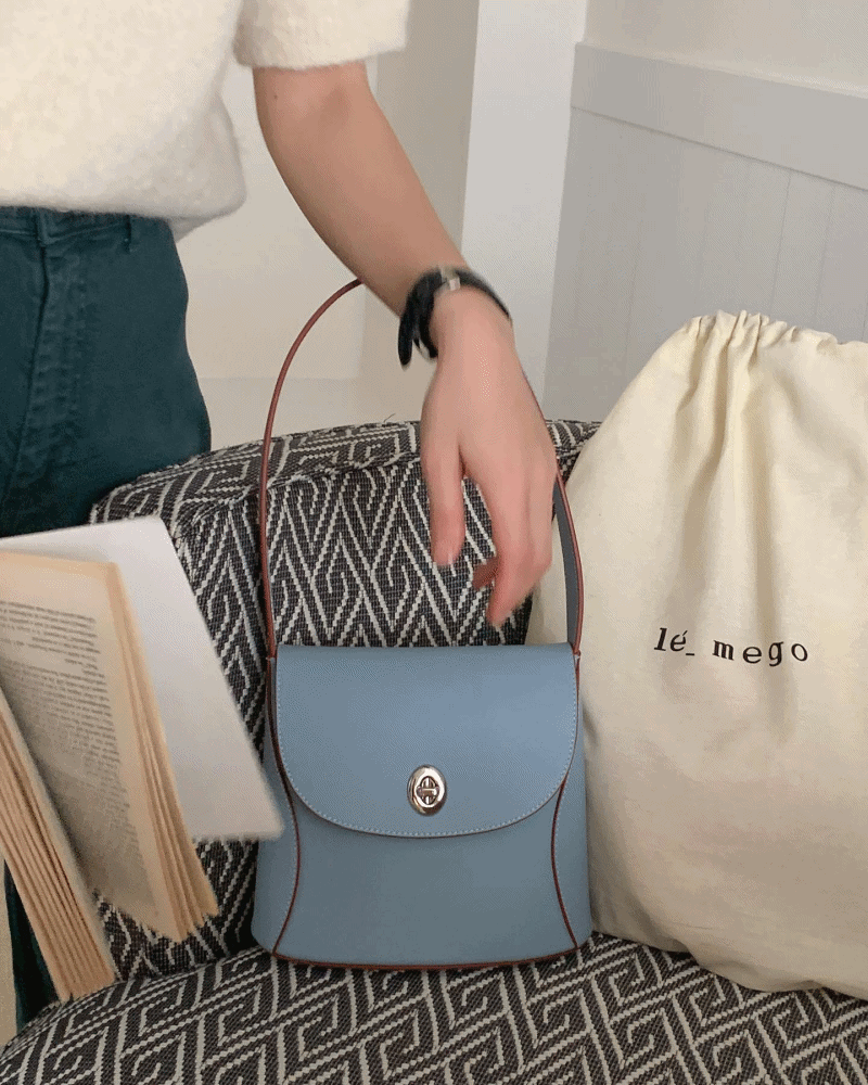 韓國lemego - 牛皮復古金釦肩背包(Mone)-藍色