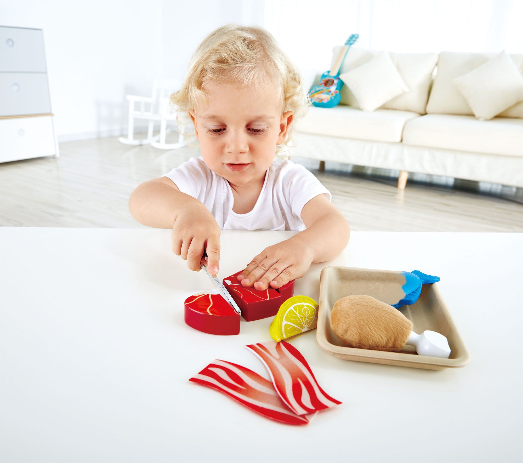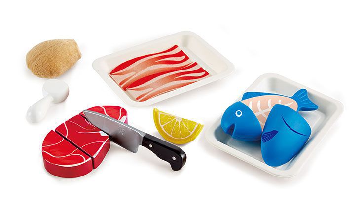 內容物:菜刀*1、牛排*1、魚肉*1、魚肉盒*1、檸檬*1、雞腿*1、培根*1、培根盒*1
