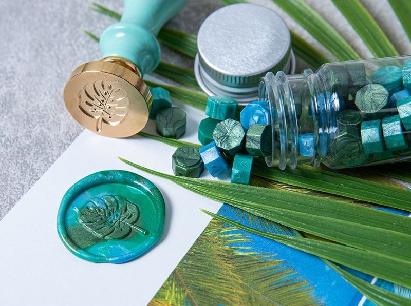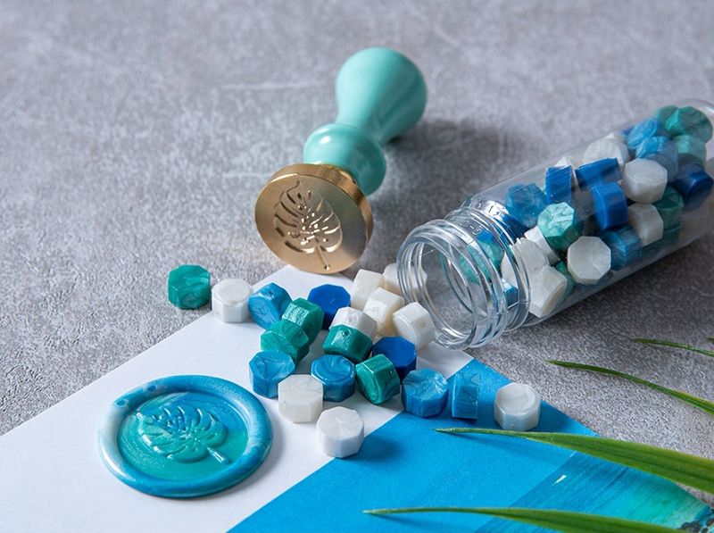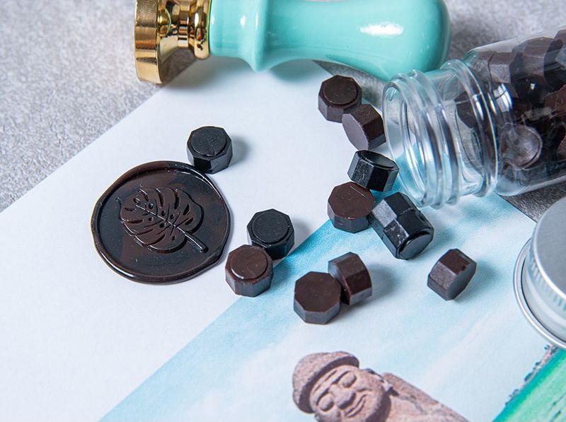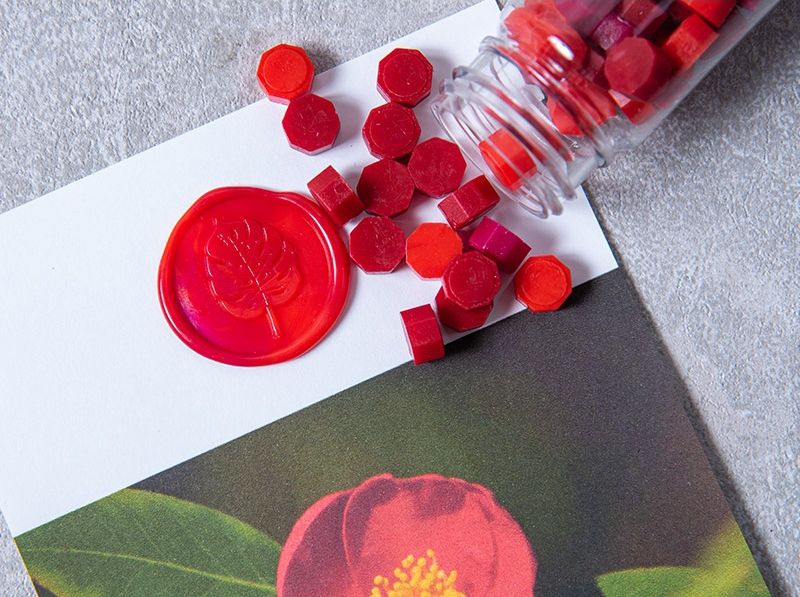 雖然我們這次開箱的是一般最常見也最好保存的蠟粒款,但編媽也小小介紹幾種常見的封蠟~ 封蠟的形狀主要分為「蠟條」和「蠟粒」這兩大宗,其中蠟條又可以「形狀」(方形或圓柱形,圓柱形蠟條可搭載熱熔膠槍使用,非常方便)或「有沒有燭芯」(有燭芯就不需另外使用蠟燭加熱)來做分類哦~