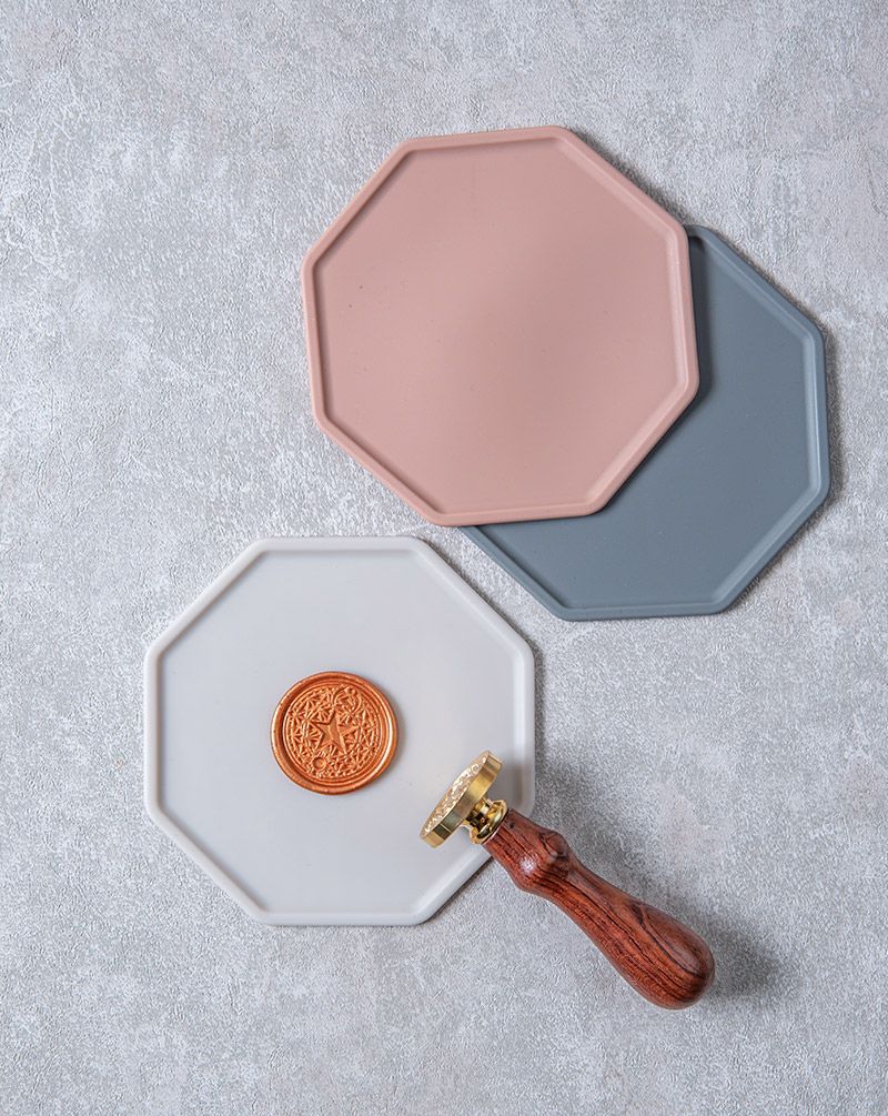 蓋章後,等待大約5-10秒,待冷卻後即可將火漆章剝離。不只好清理,也很輕薄,方便收納!平常也可以當成杯墊使用~