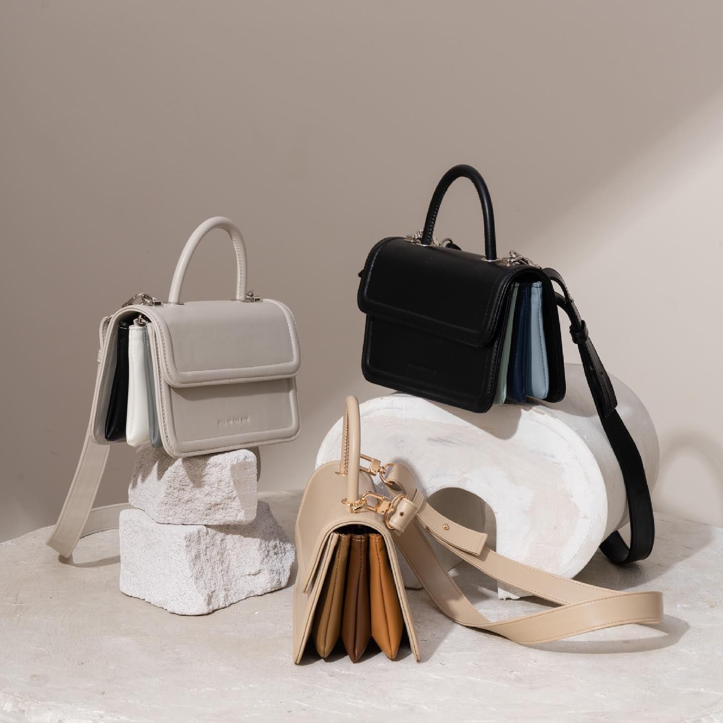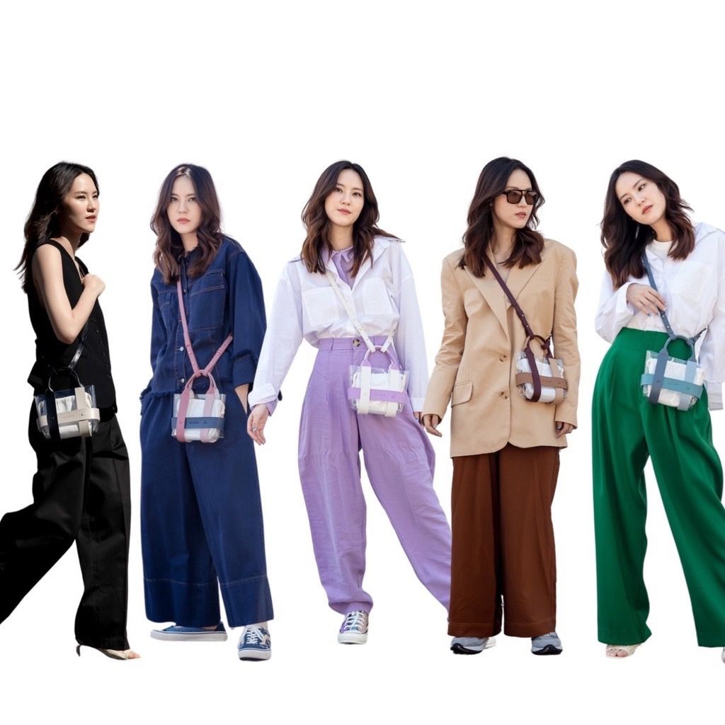 透明塑膠搭配 PU 皮革的拼接設計,獨特又吸睛!撞色設計充滿強烈的自我風格,是很實搭的現代包款喔!