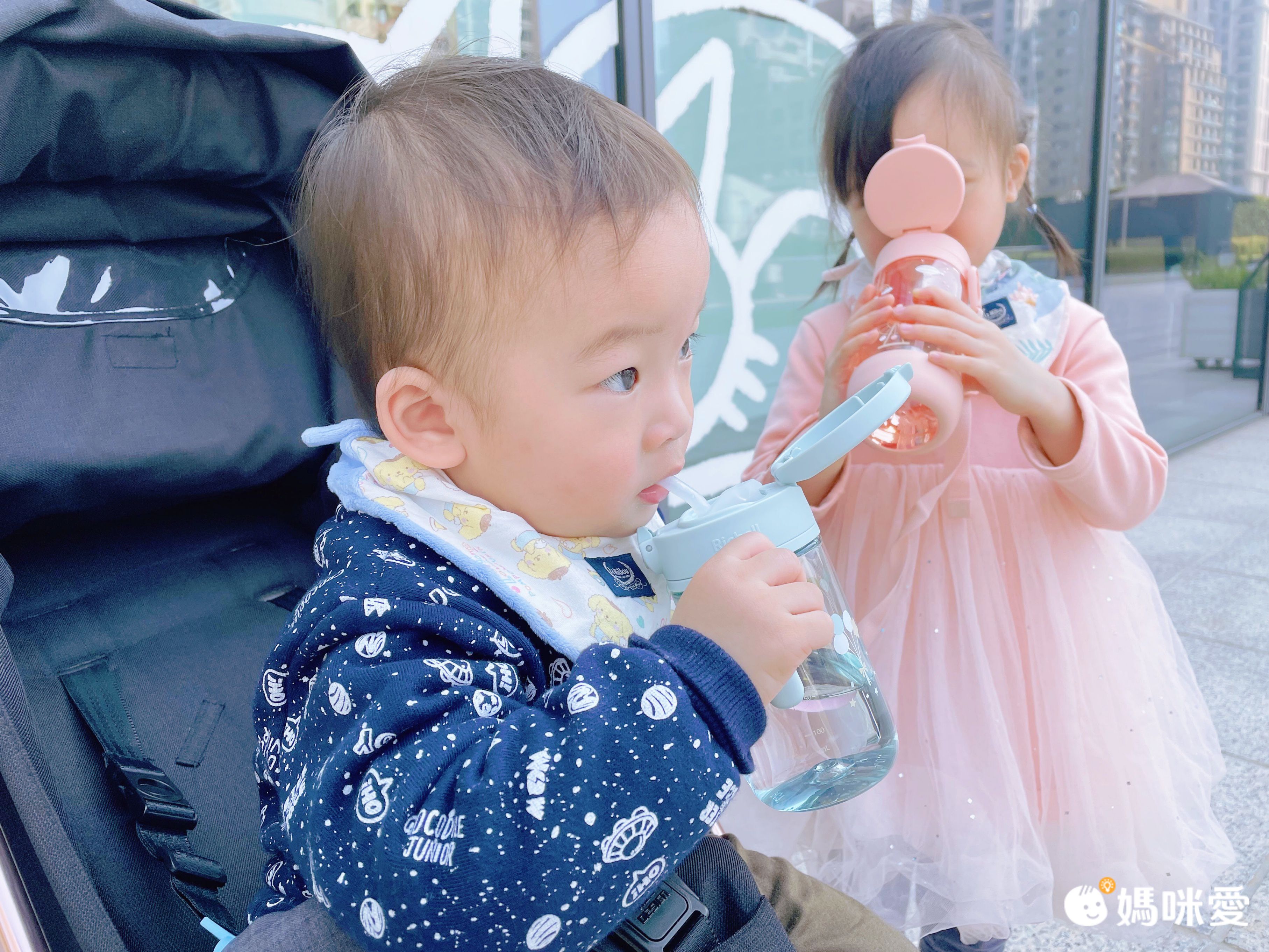 FAFA使用吸管水杯也喝的很上手,旁邊的把手也抓得很穩呢