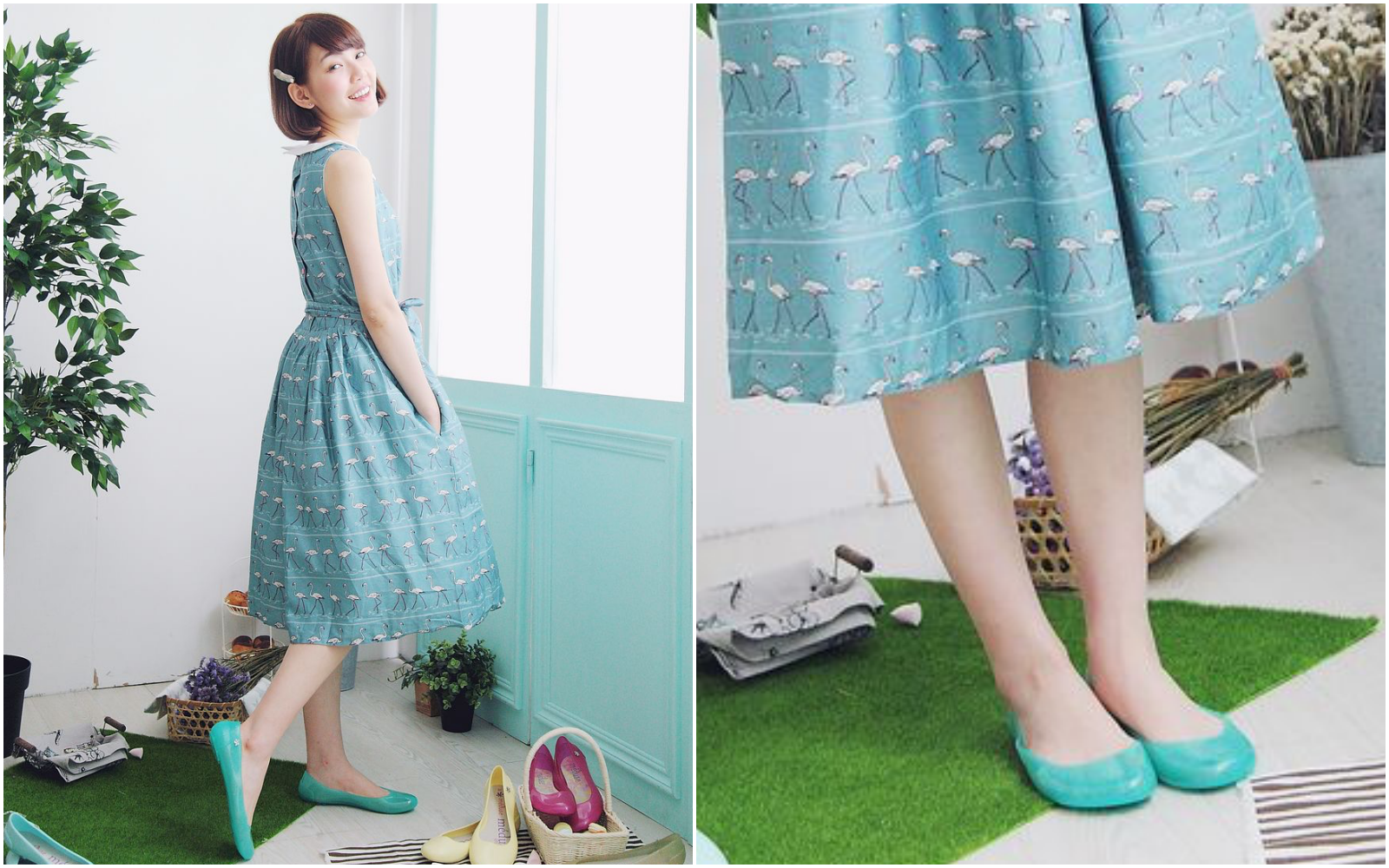 簡單的白色洋裝跟草帽,讓鞋子來搶佔視覺主體