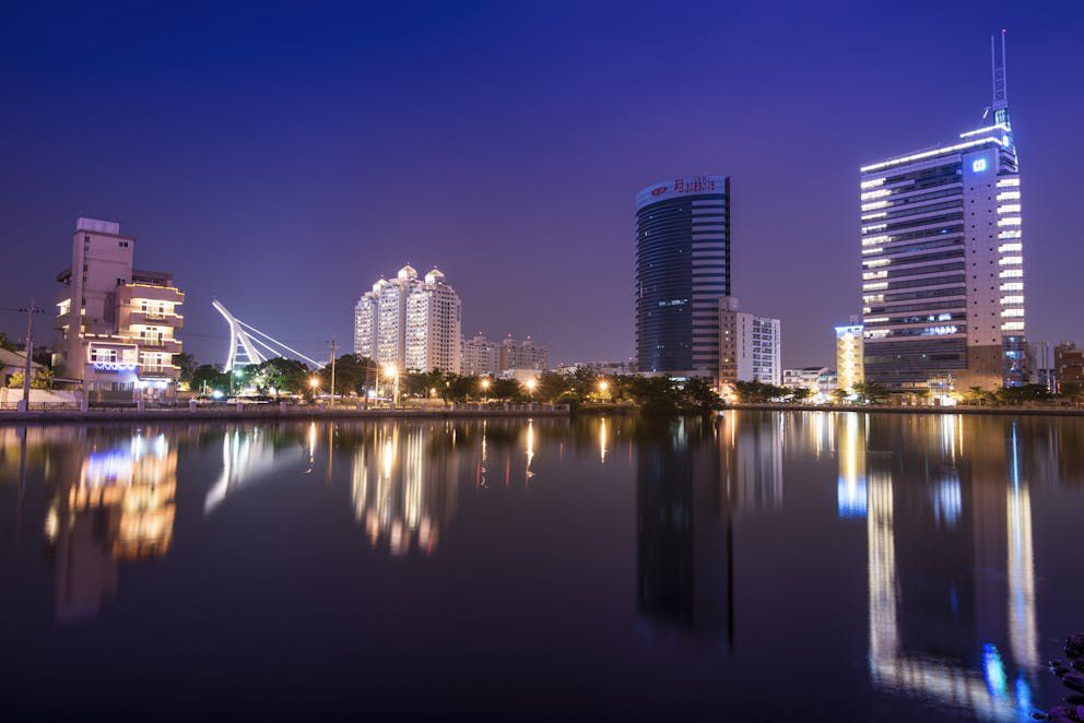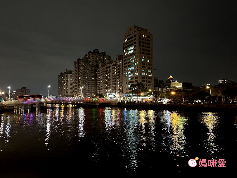 晚上漫步在安平運河旁,沿岸的夜景倒映在河上很漂亮!