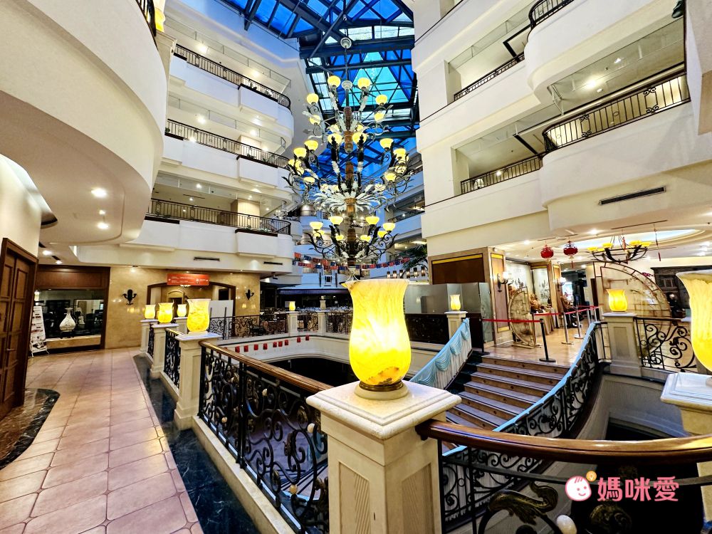 雅緻家庭房由於這一天我們入住升等的雅緻家庭房,從大廳搭乘電梯抵達房間的樓層位置,飯店的構造很特別,房間的排列呈現一個回字型,視覺上非常通透且氣派,還能由上往下欣賞大廳的歐風水晶吊燈與迴旋樓梯。