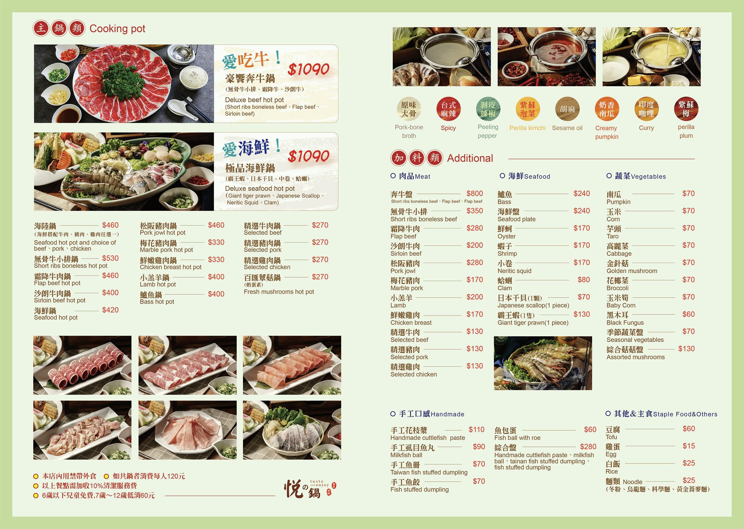 飯店火鍋的菜單如下,如有需要可以現場加點喔~(線上菜單僅供參考,品項與價格請以現場為主)
