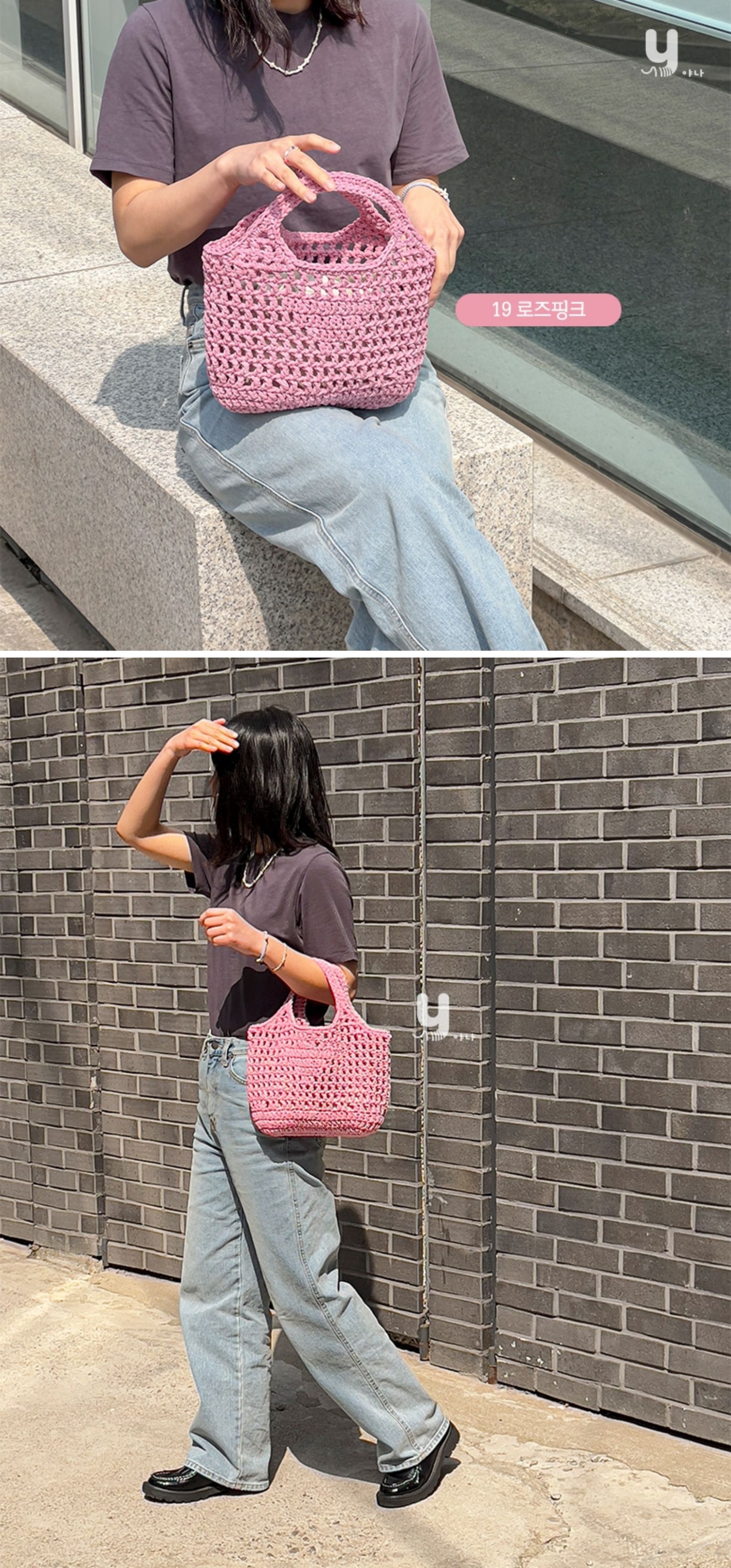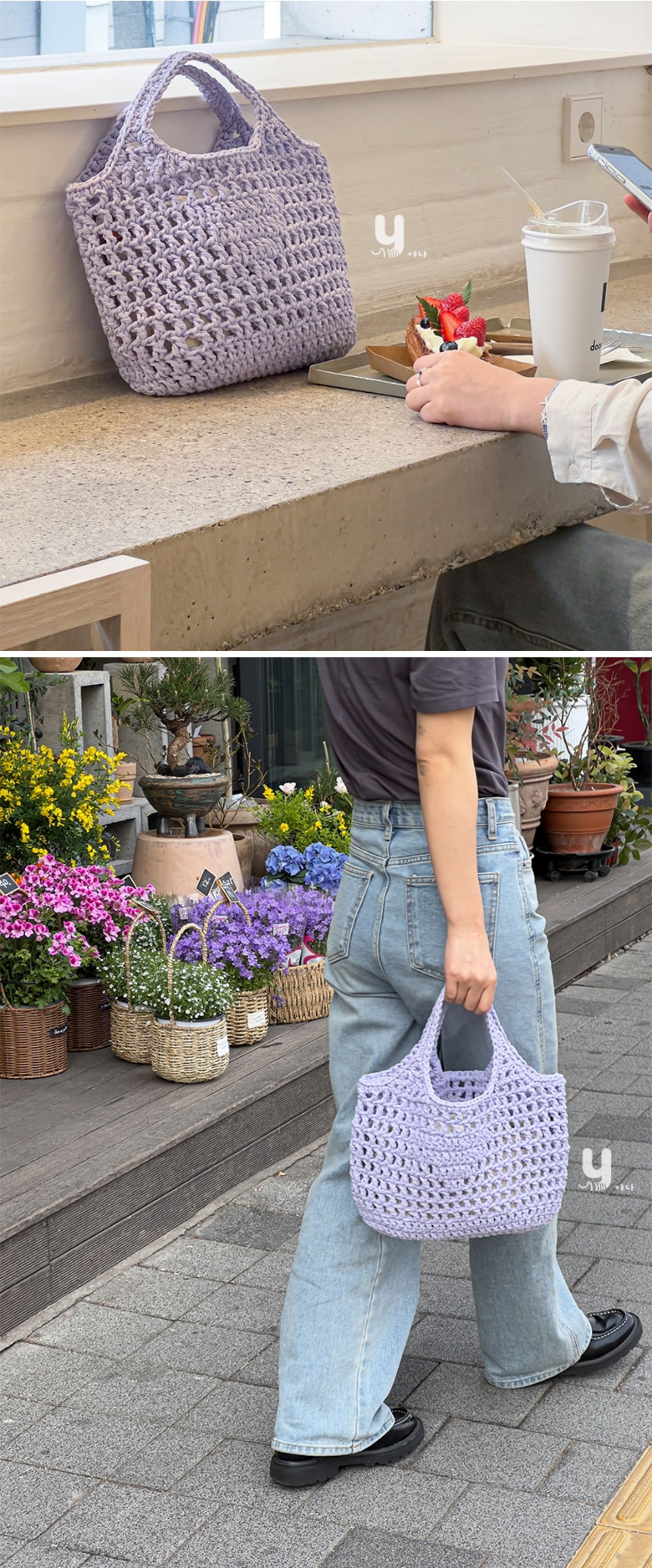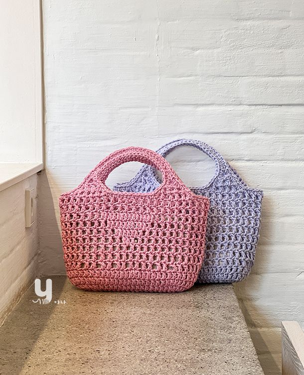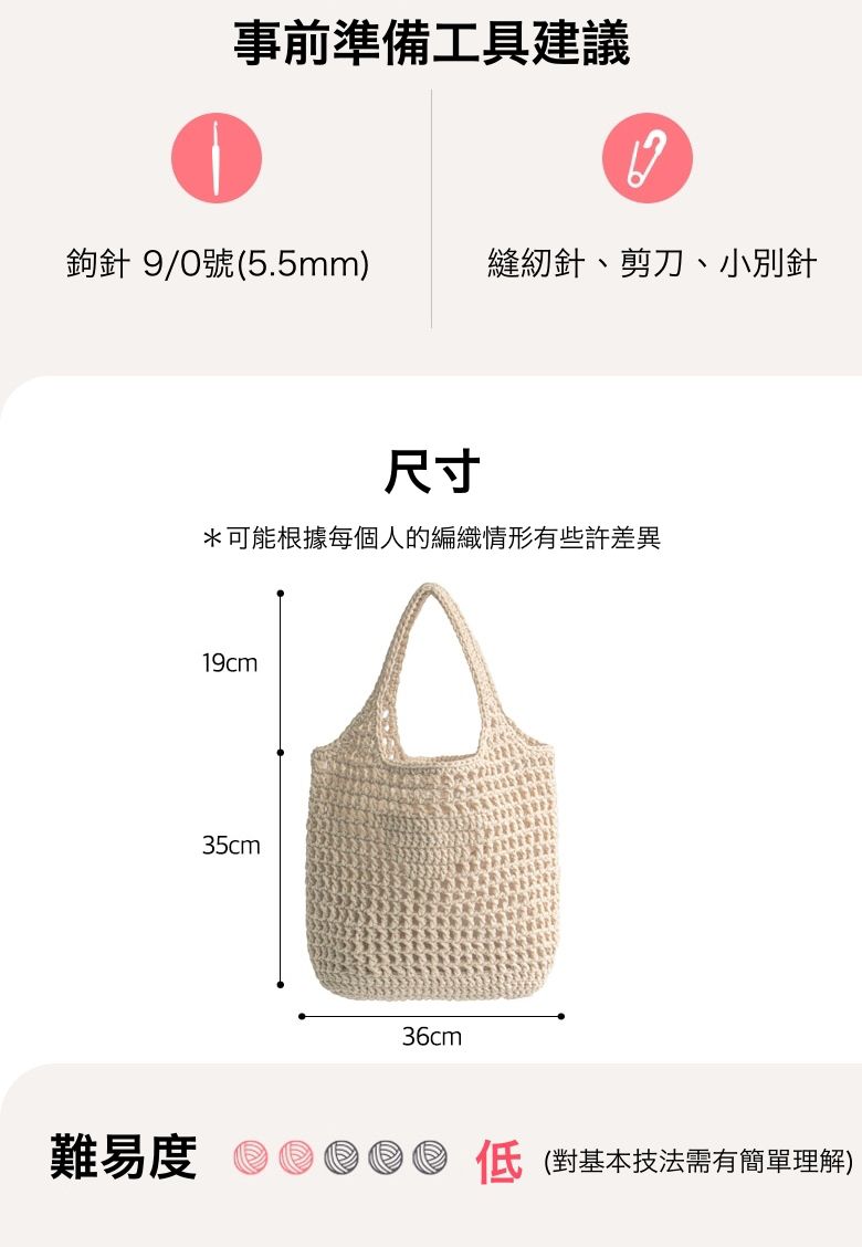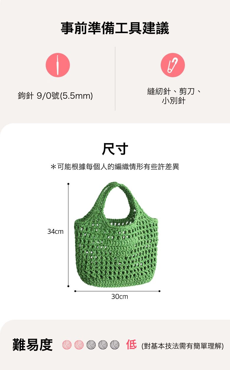 只需要 1 球就可以做一個 Mini 尺寸的小提袋(下圖左),2 球可以做 Large 尺寸的肩揹袋呦(下圖右)!