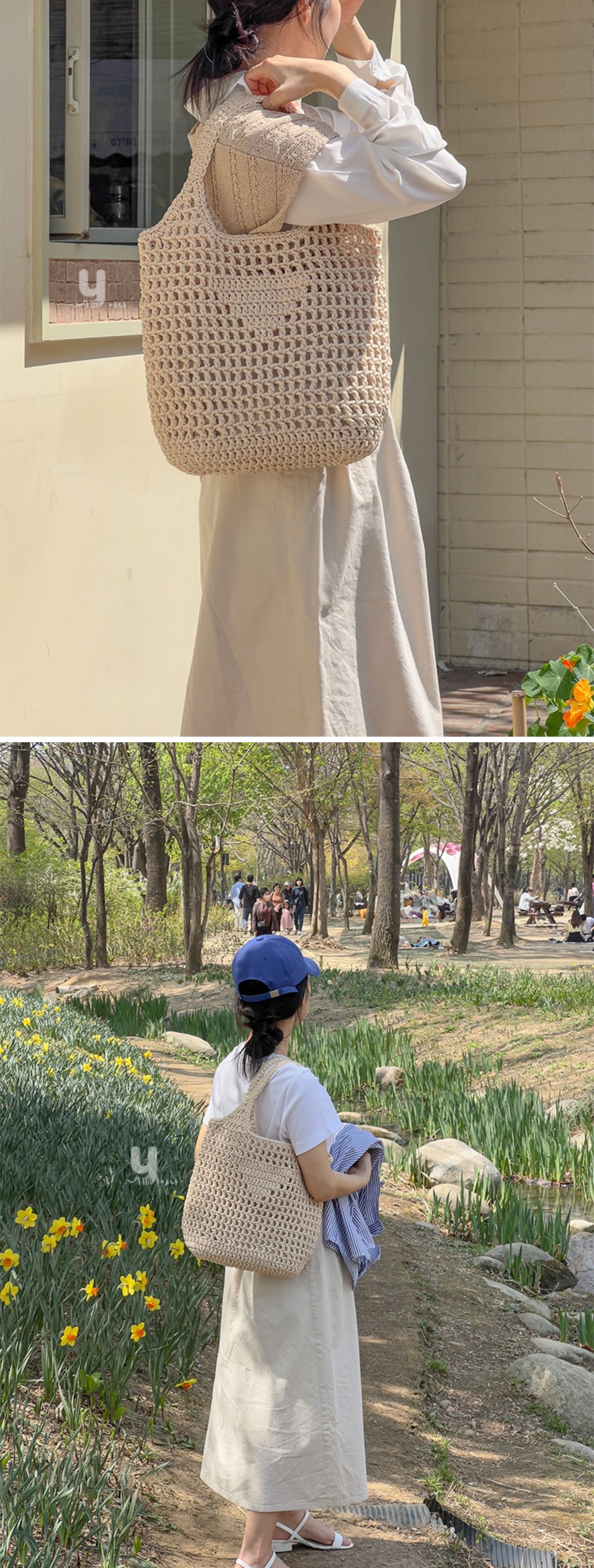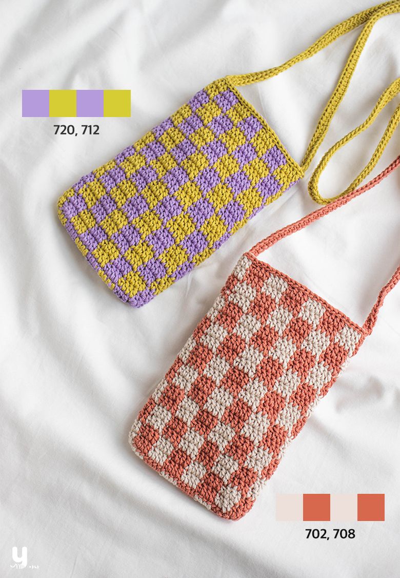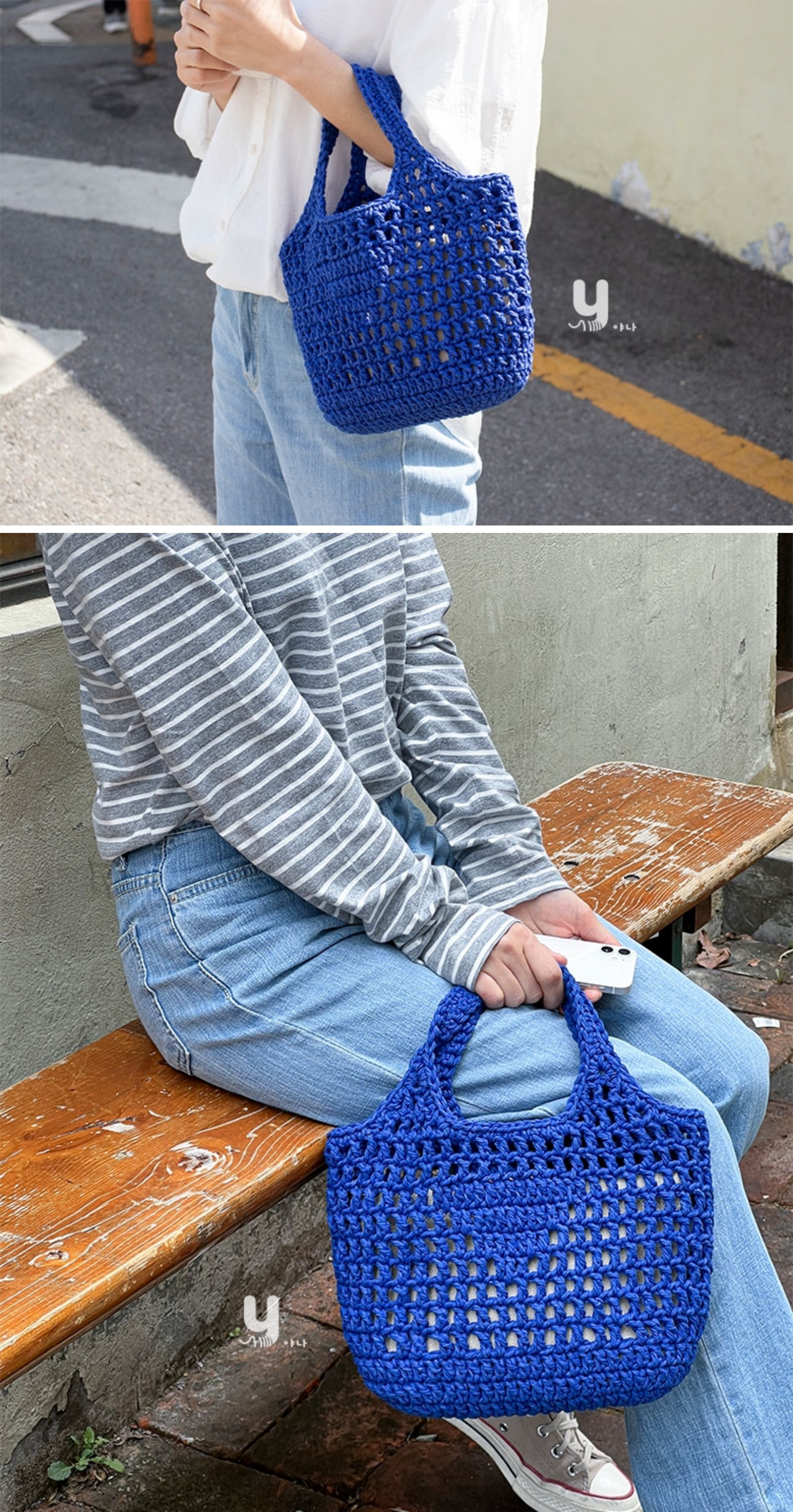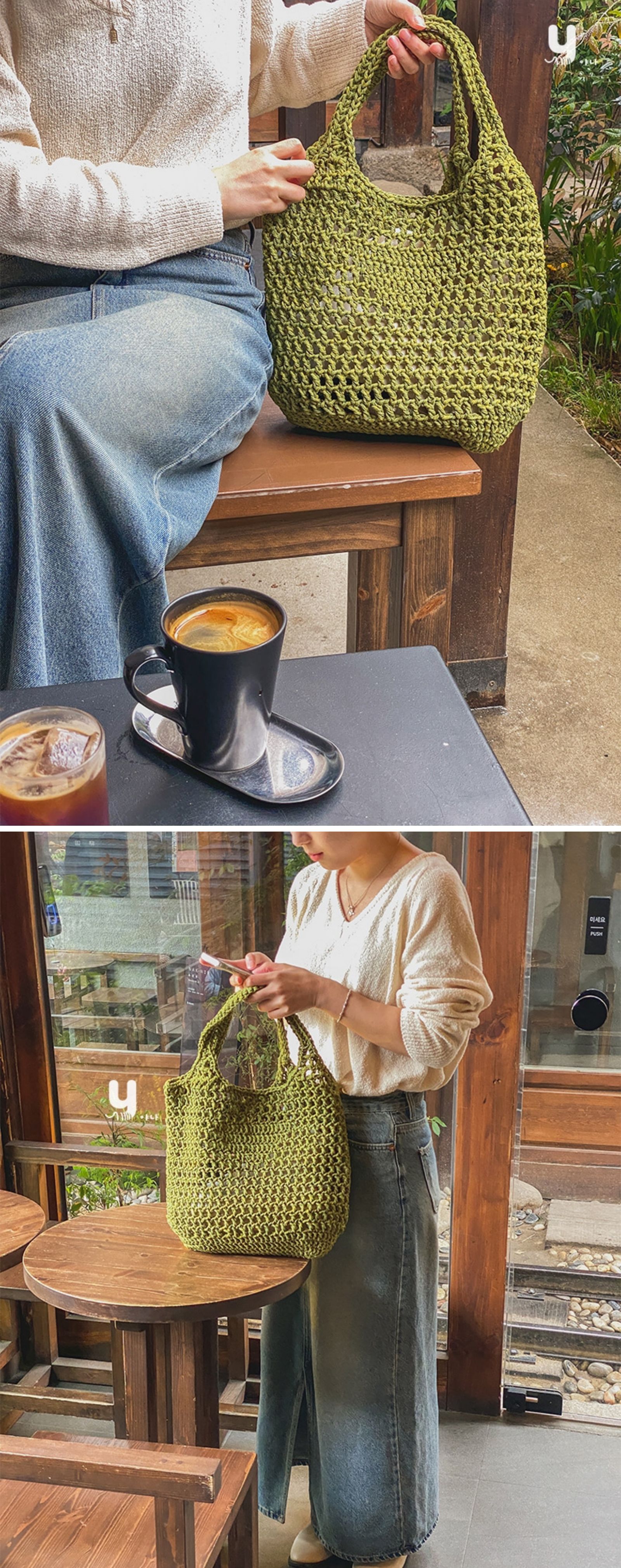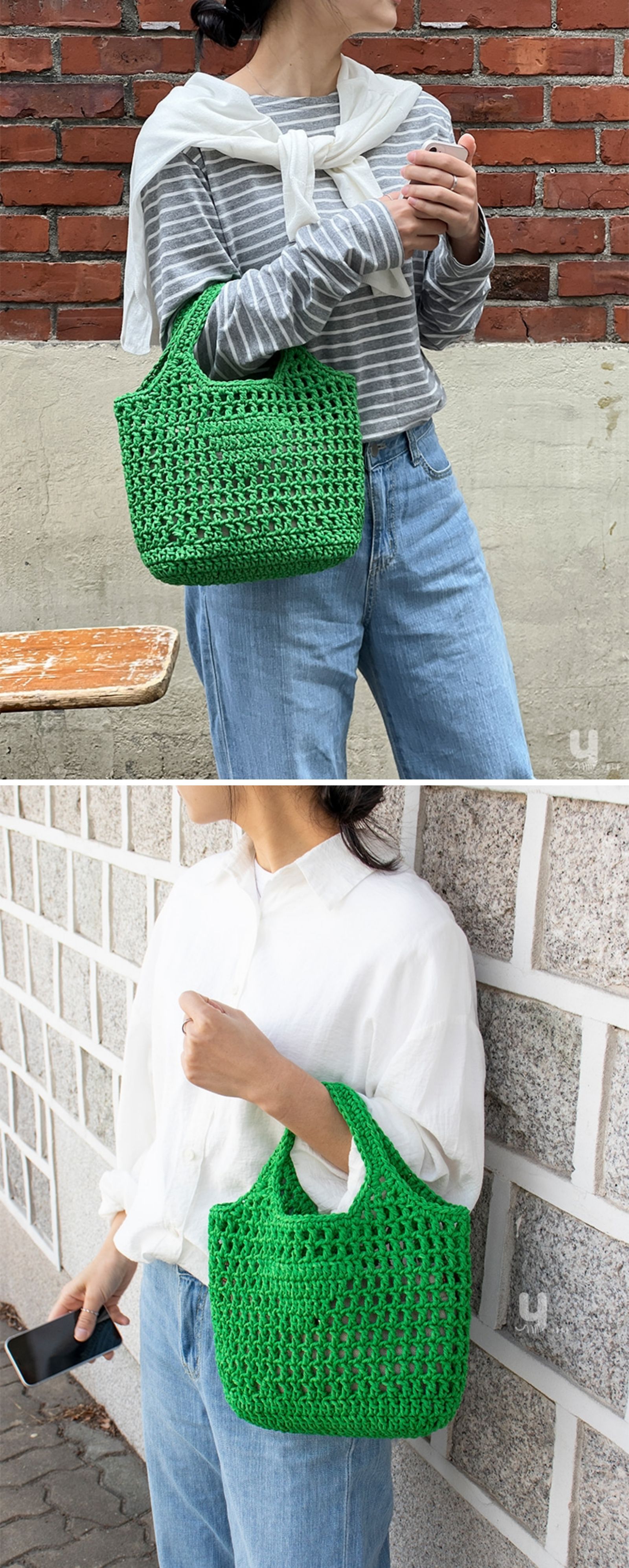 只需要 1 球就可以做一個 Mini 尺寸的小提袋(下圖左),2 球可以做 Large 尺寸的肩揹袋呦(下圖右)!