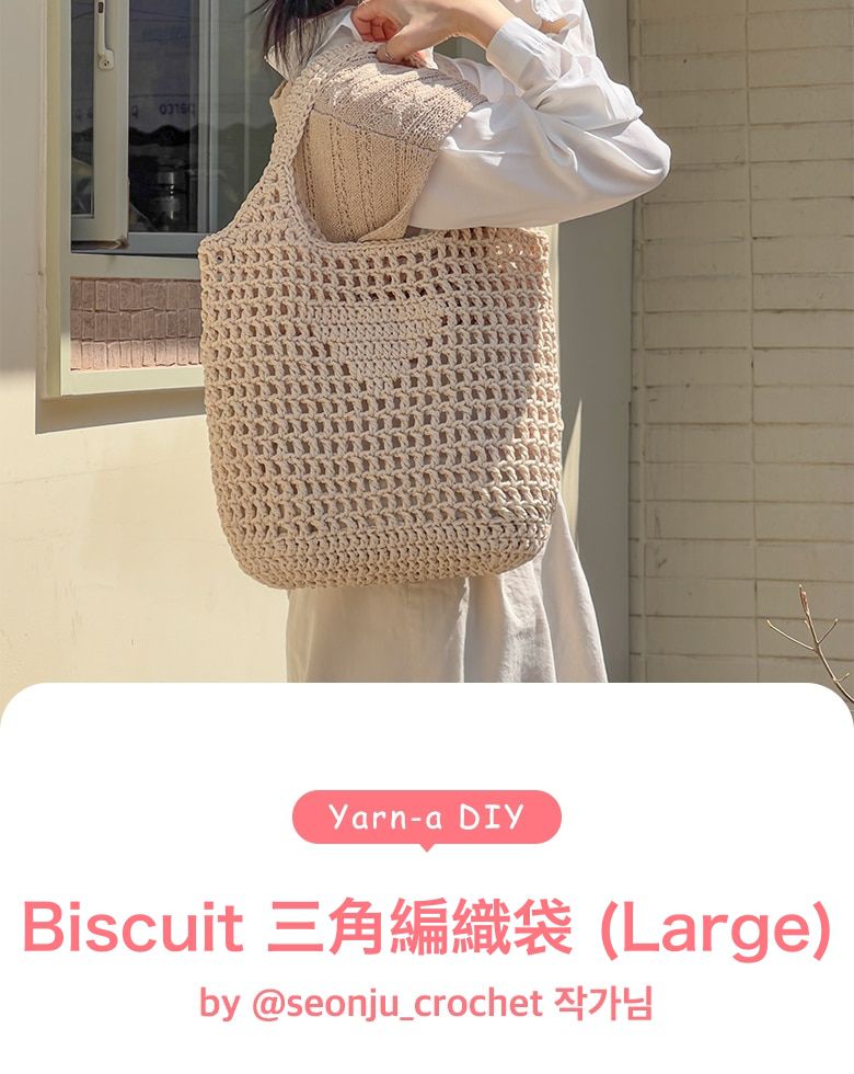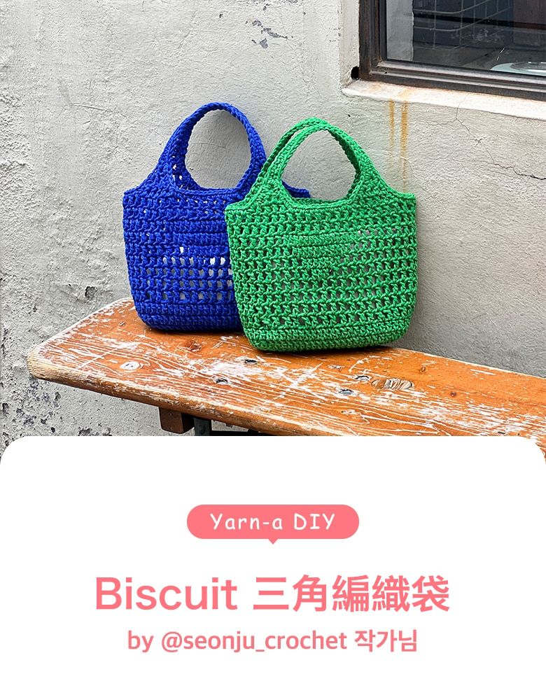 Biscuit 款的織線雖然重量輕,但其編織成品棱角分明,形狀變形較小,可以長時間使用,適合用來編織提袋~