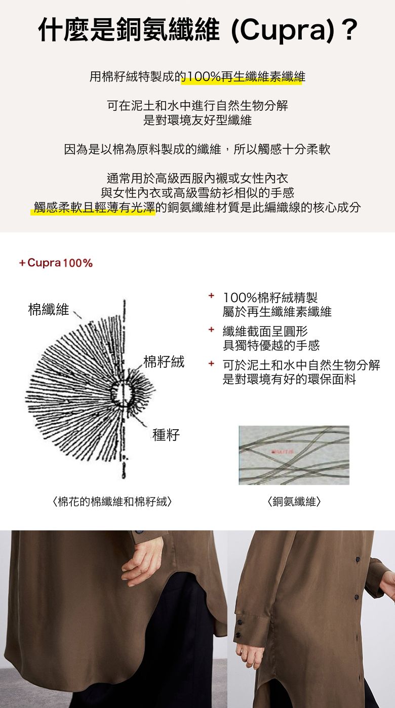 Olio 款編織線的主成份為 Cupra 纖維 (銅氨纖維) ,是用棉籽絨特製而成的 100% 再生纖維,面料有棉柔的手感,且輕薄有光澤,大多運用於女性內衣、高級西裝內裡等織品!