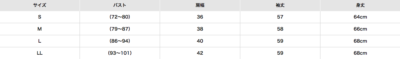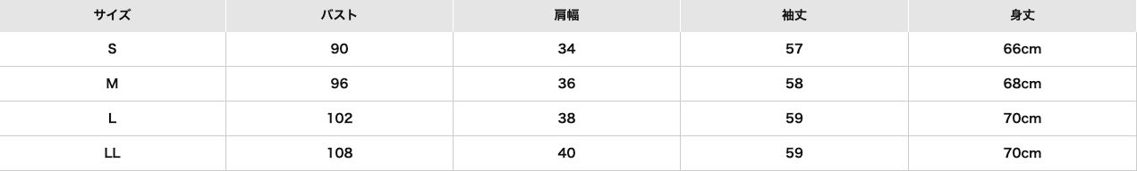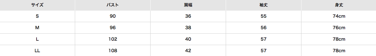 尺寸表給媽咪們參考,由左到右分別是:尺寸、胸圍、肩寬、袖長、總長(單位:cm)