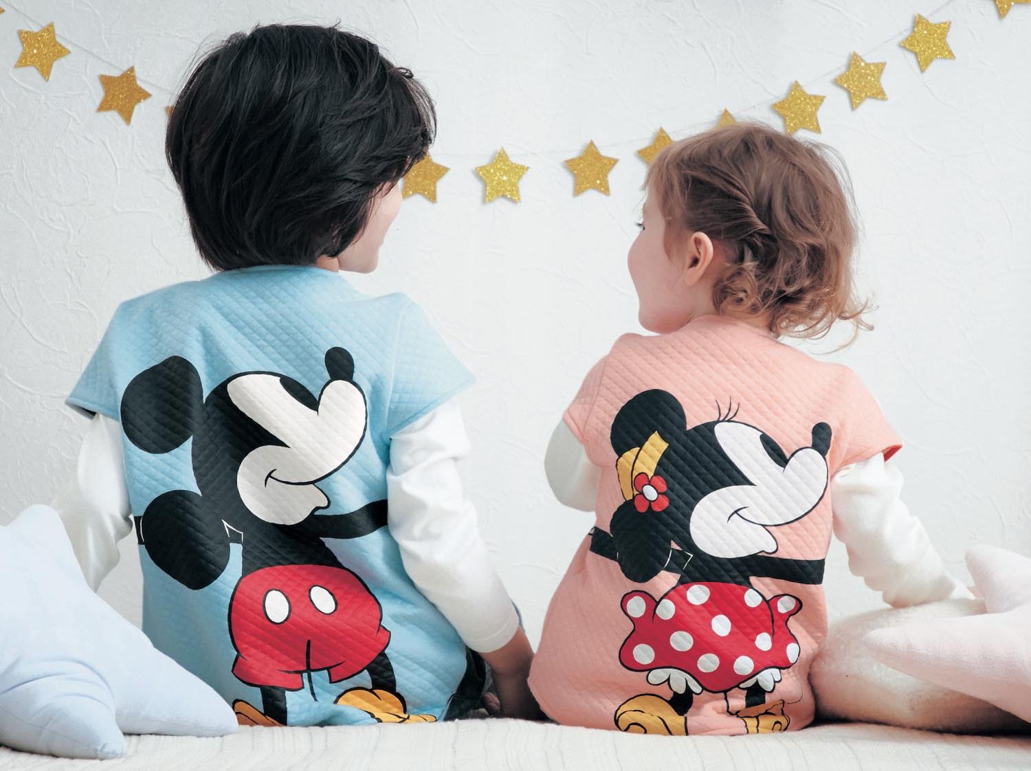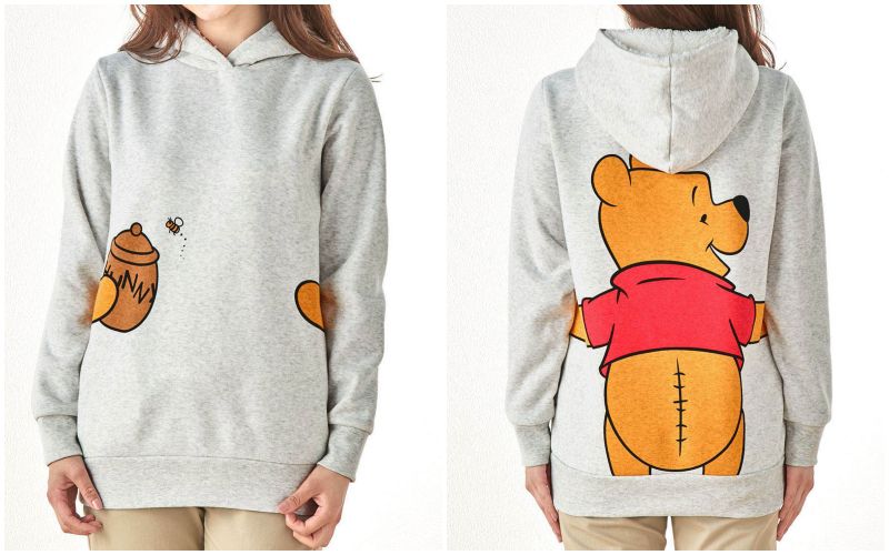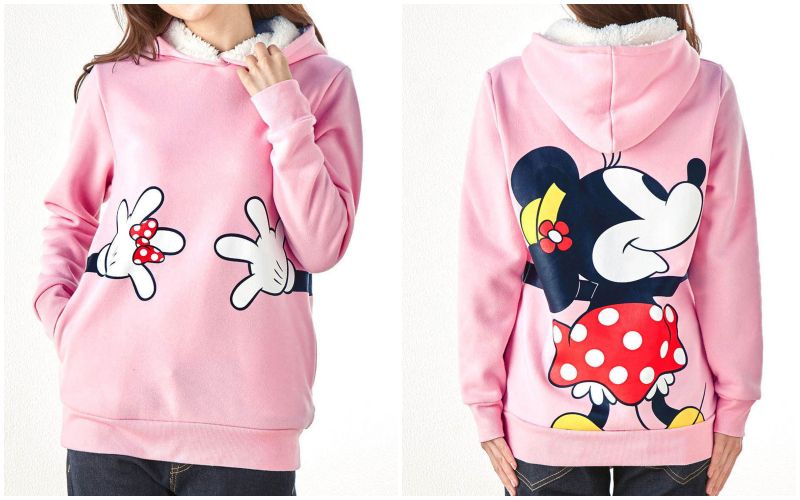 背面是超可愛的迪士尼卡通~伸出一雙長長的手,往前環抱住寶貝,穿著就覺得好療癒、好溫暖啊~(♡˙︶˙♡)